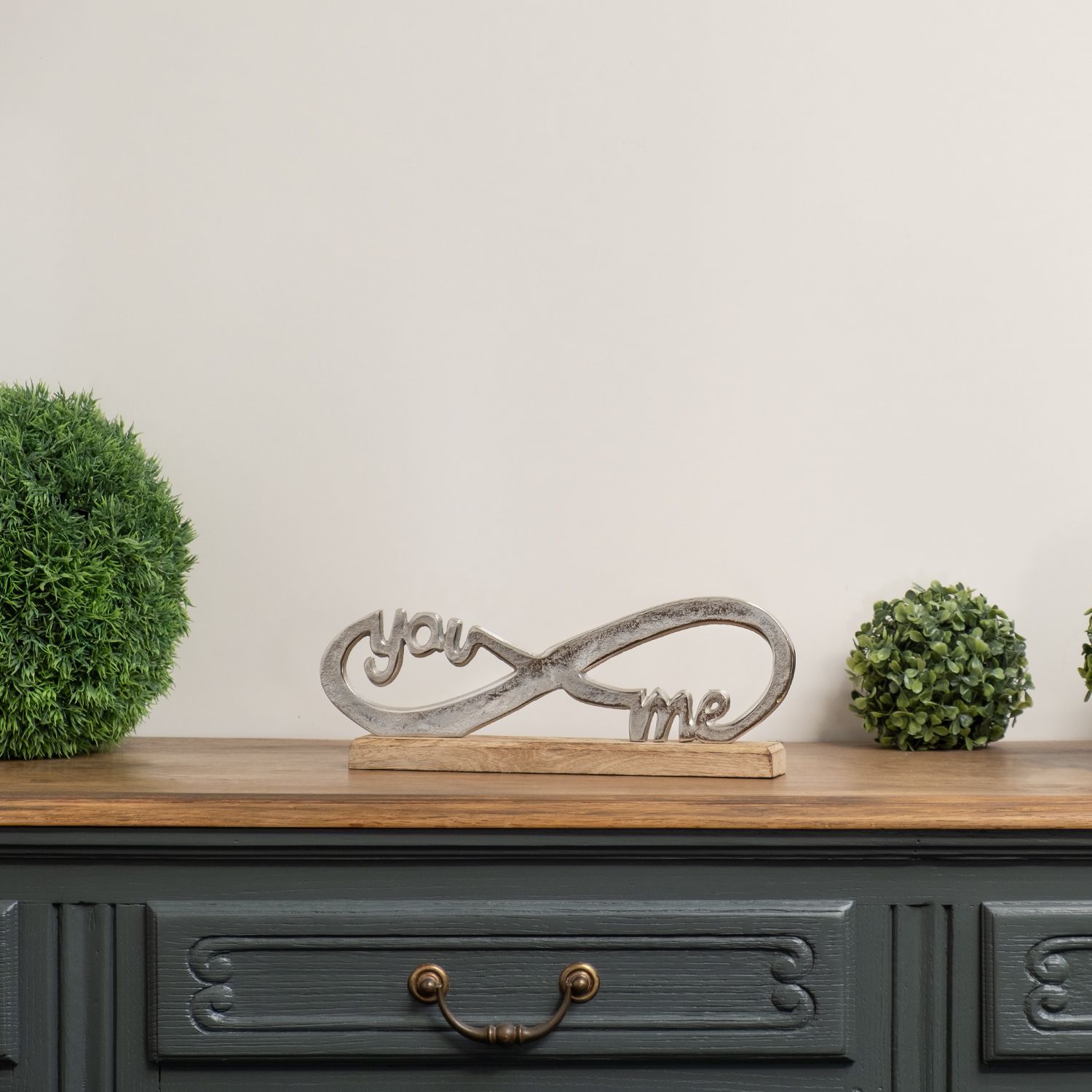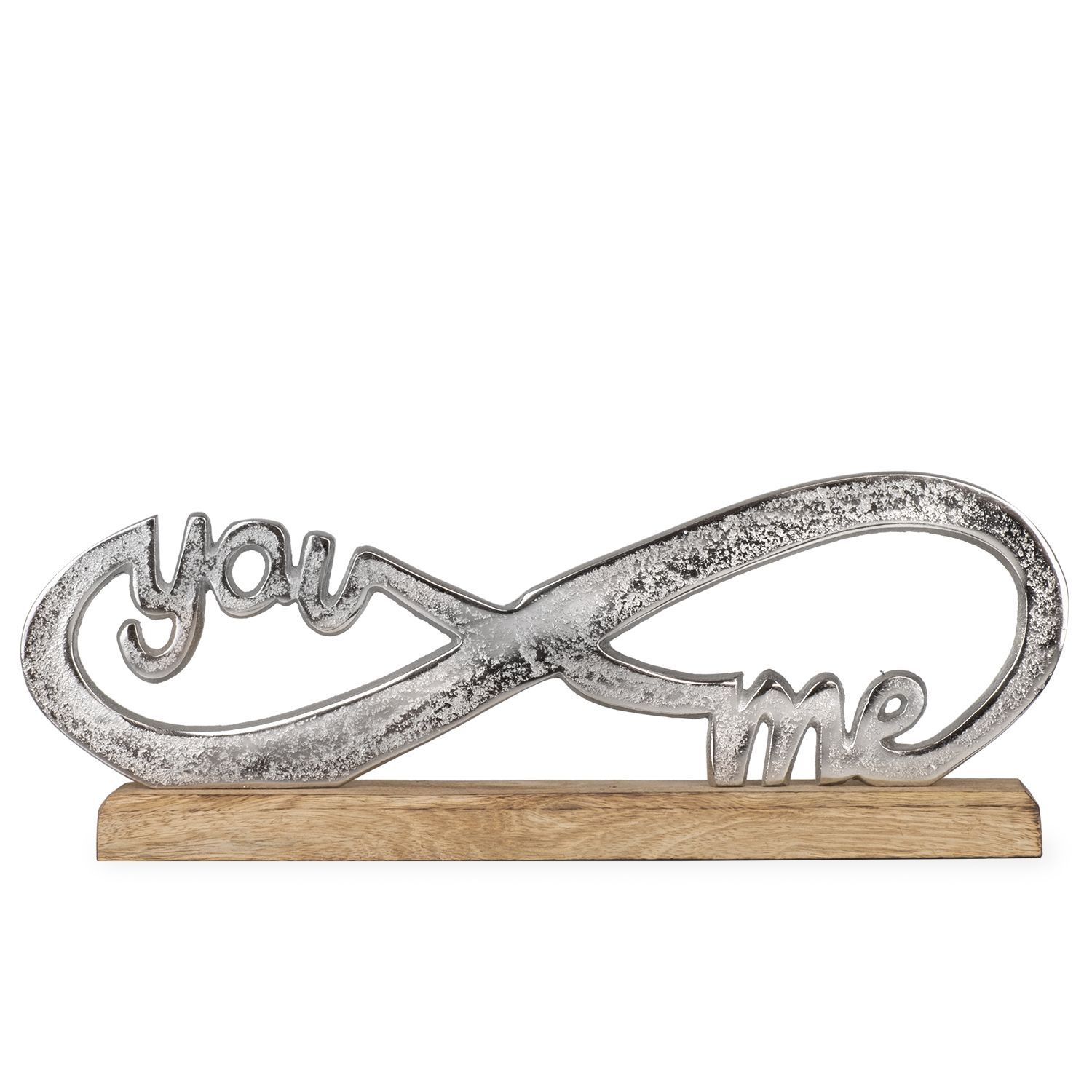 YOU & ME Infinity Figur aus Aluminium auf Holzsockel ? Dekofigur silber romantisch