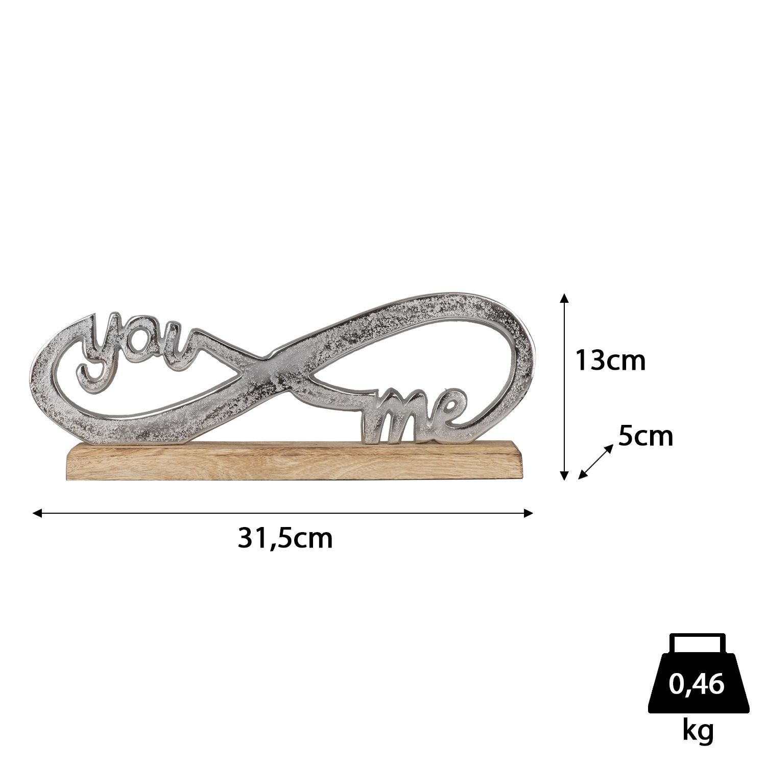 • YOU & ME Infinity Figur aus Aluminium auf Holzsockel 31,5 x 13 x 5 cm Dekofigur