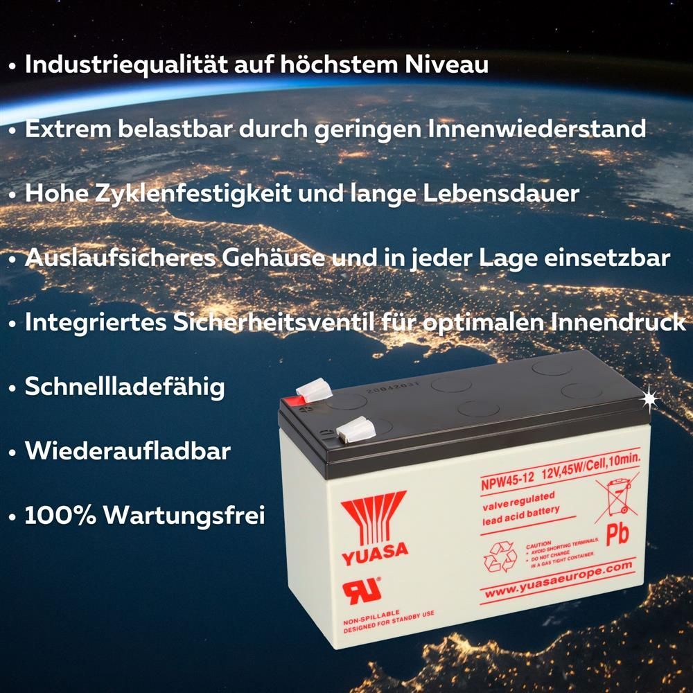 Yuasa Blei-Akku NPW45-12 Pb 12V / 8,5Ah Hochstrom, Faston 6,3