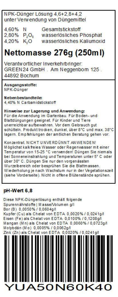 Flüssiges Düngerkonzentrat für Yukka-Palmen im Kübel und Beet. NPK-Dünger für Yukka (bot. Yucca) auch Palmlilie genannt. Schnelle Verfügbarkeit für die Pflanze durch effektivste Komplexverbindungen. Sehr ergiebiges und sehr effektives Düngerkonzentrat. Je nach Pflanzenart und Zustand sind 250ml Düng