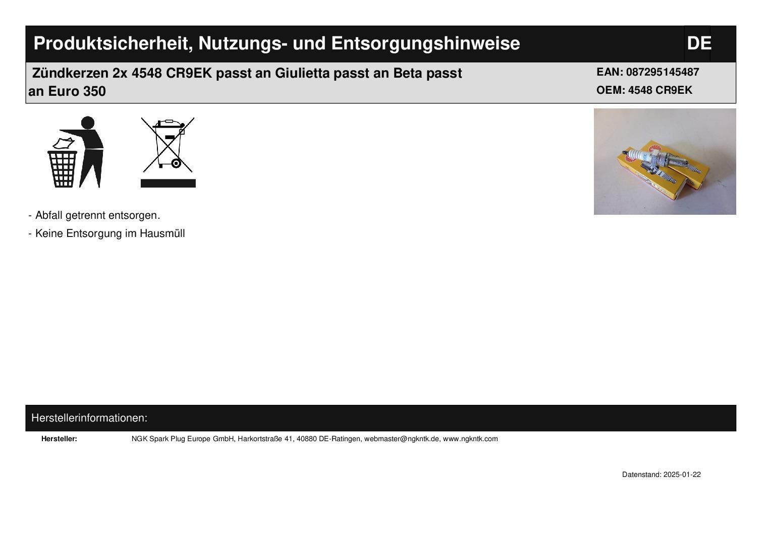 NGK Z?ndkerzen 2x 4548 CR9EK passt an Giulietta passt an Beta passt an Euro 350