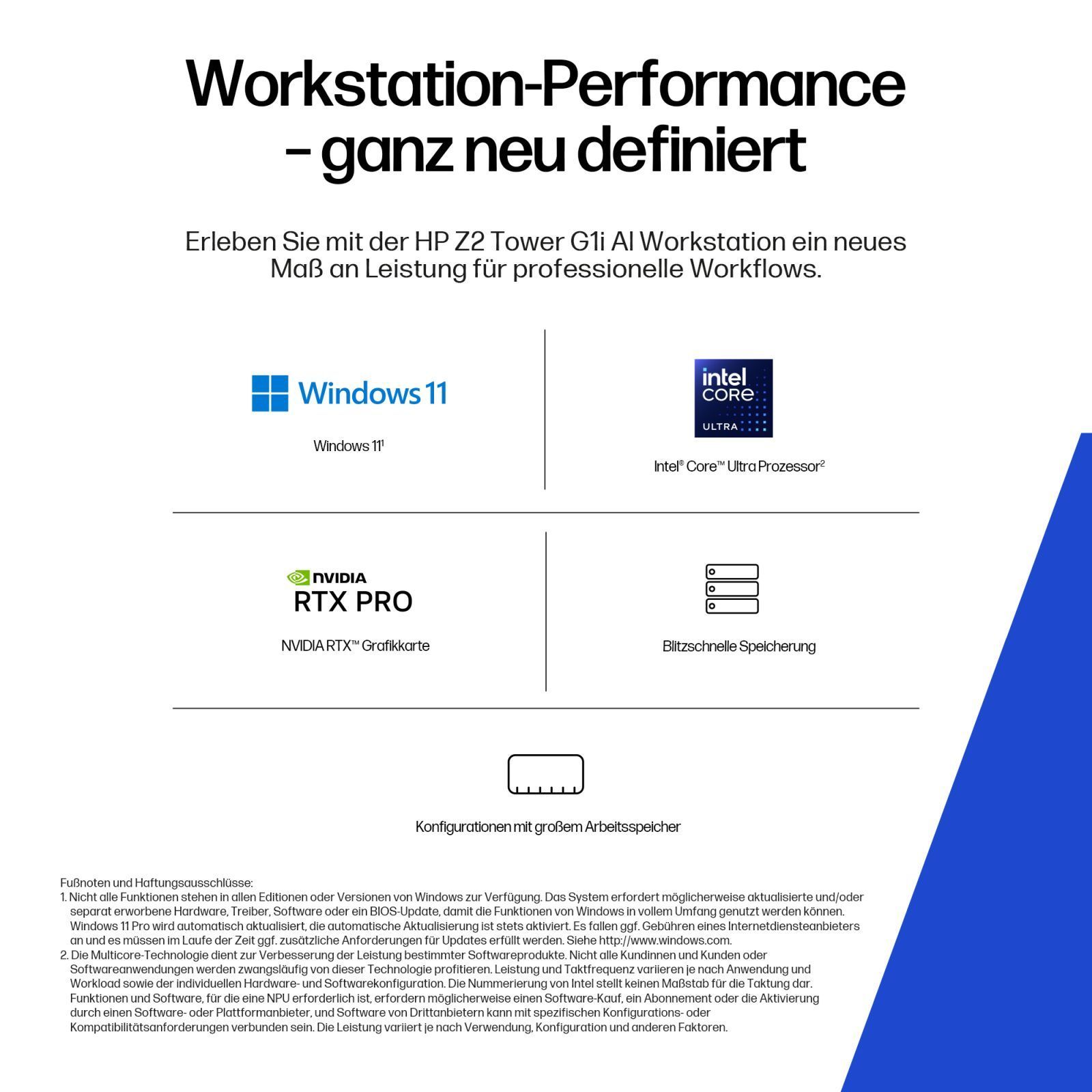 HP Z2 TWR G1I CU9 285K 32GB 1TB W11P6 WIFI7 NO KB/M