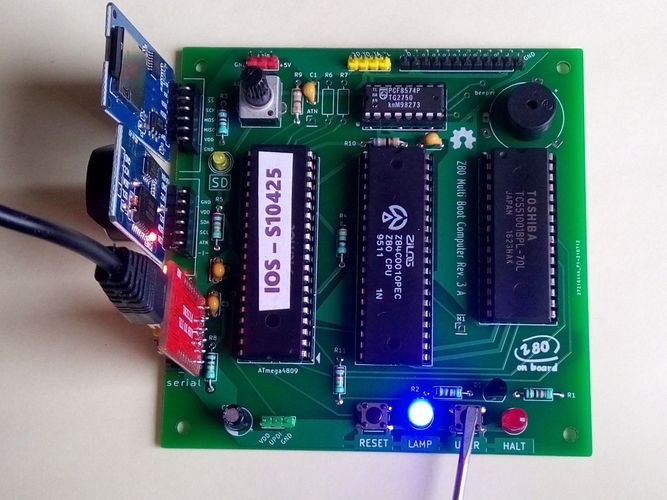 Dies ist ein zusammengebauter Z80-MBC3 Einplatinencomputer. Ein System, das mit einem Terminal oder Terminalemulator auf einem PC betrieben wird und dann CP M (2.2 und 3), QP M und verschiedene Programmiersprachen wie Microcoft Basic, Turbo Pascal und Forth ausführen kann. Dieses System ist auch als