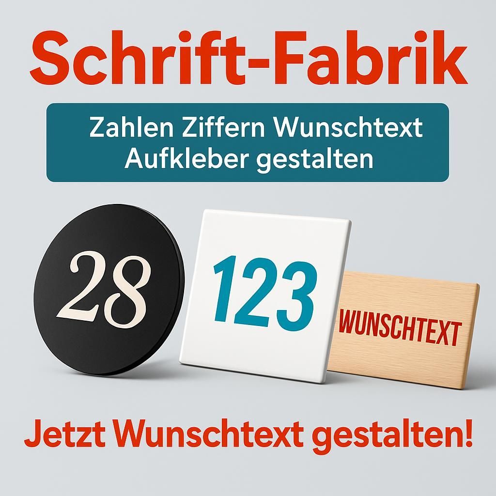 Zahlen Ziffern Wunschtext Aufkleber Klebebuchstaben Beschriftung Klebefolie gestalten