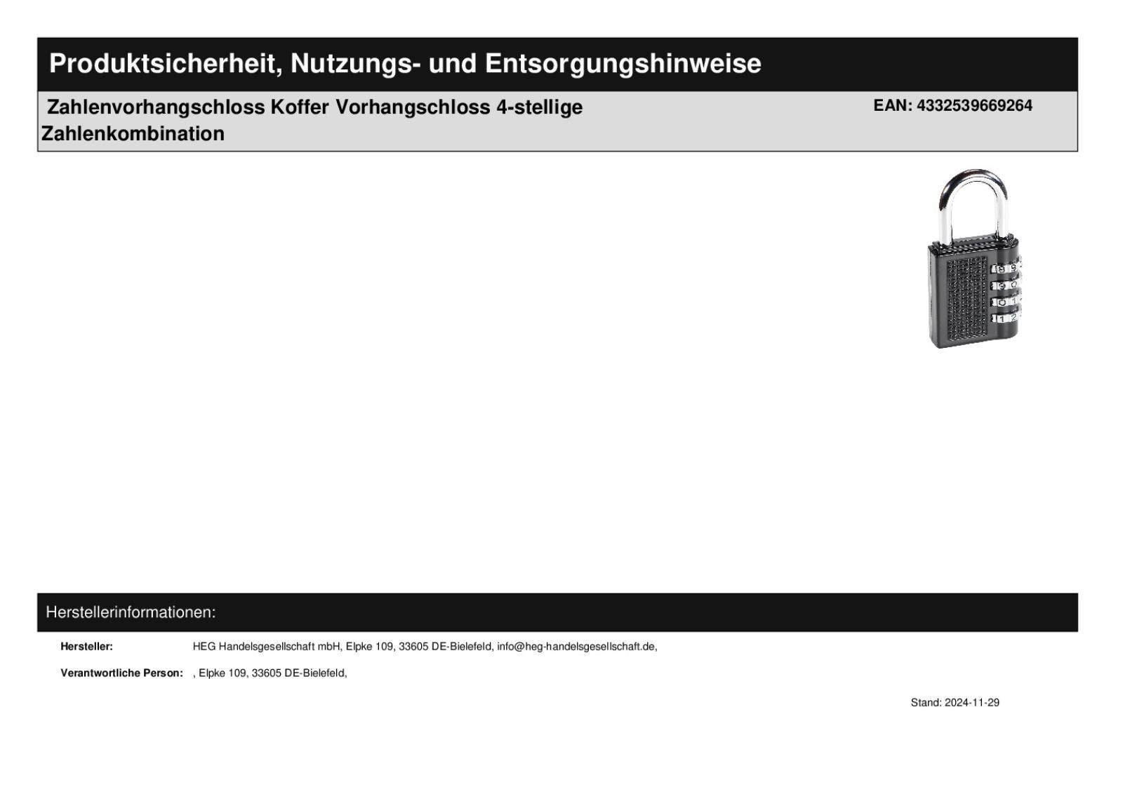 Zahlenvorhangschloss Vorhangschloss 4-stellige Zahlenkombination Kofferschloss