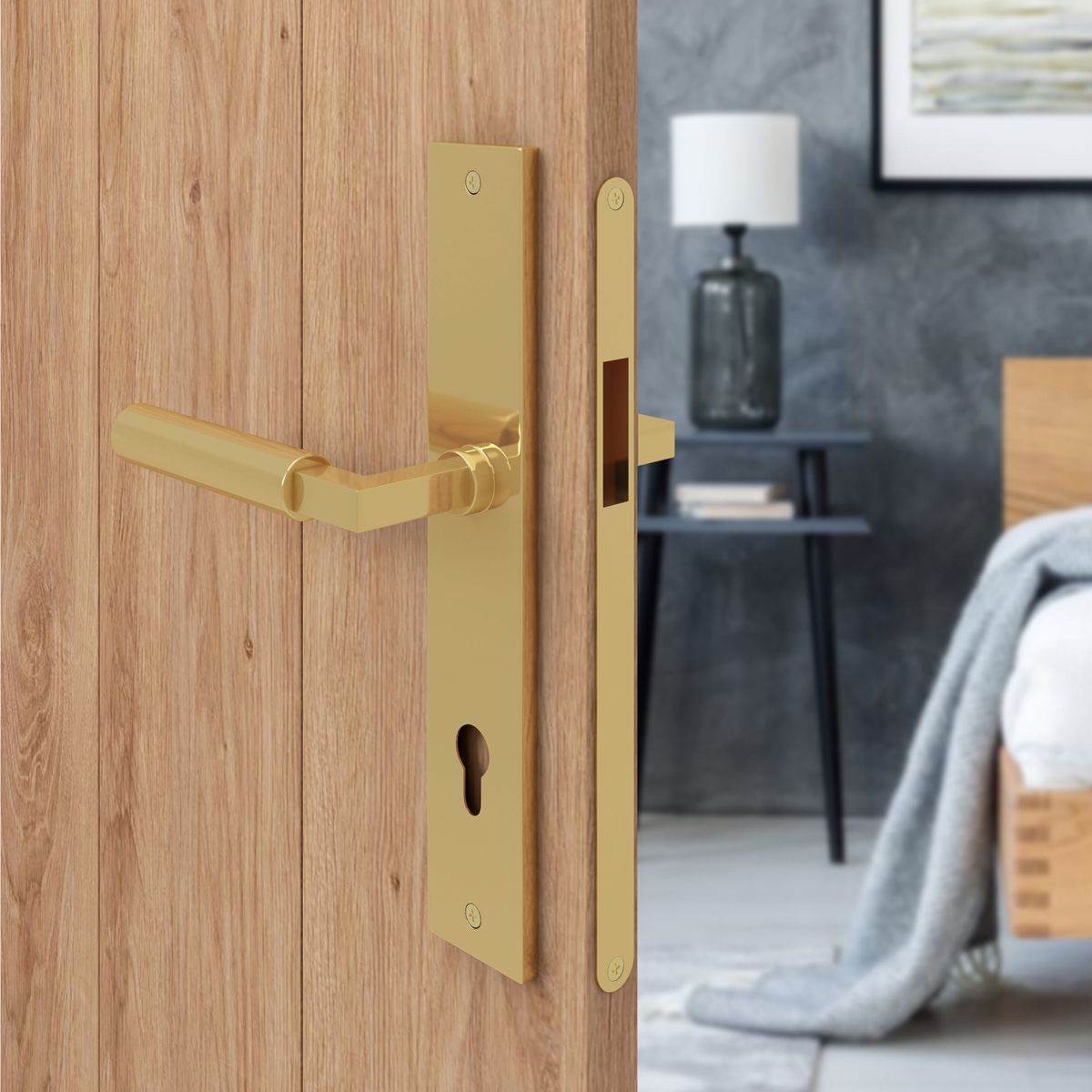 Zamak Langschildgarnitur Messing Optik Baustil Türdrücker Türbeschlag Türklinke
