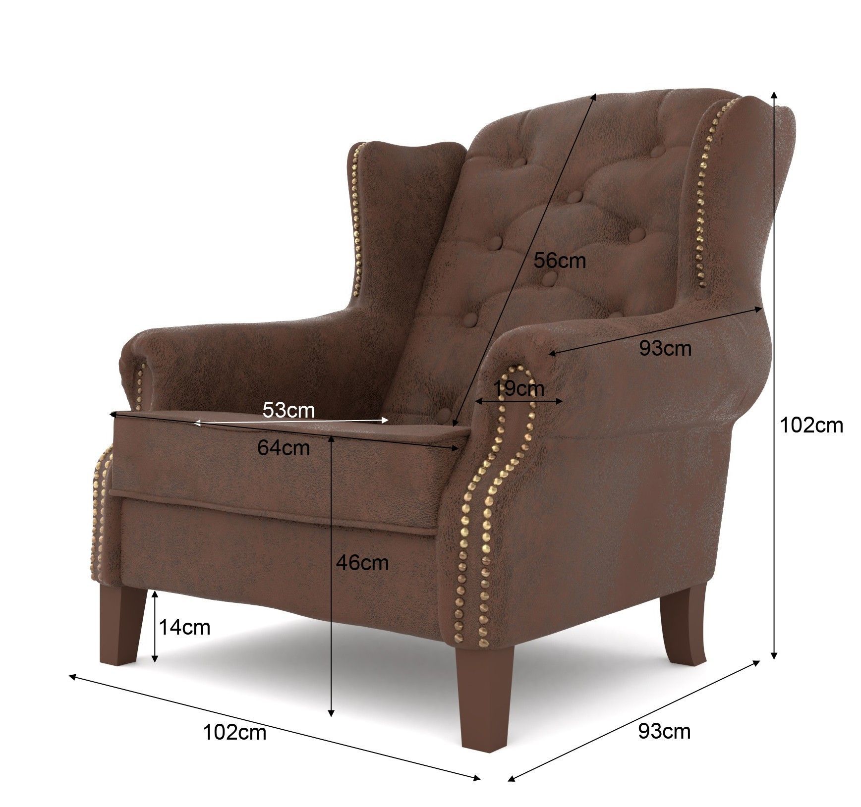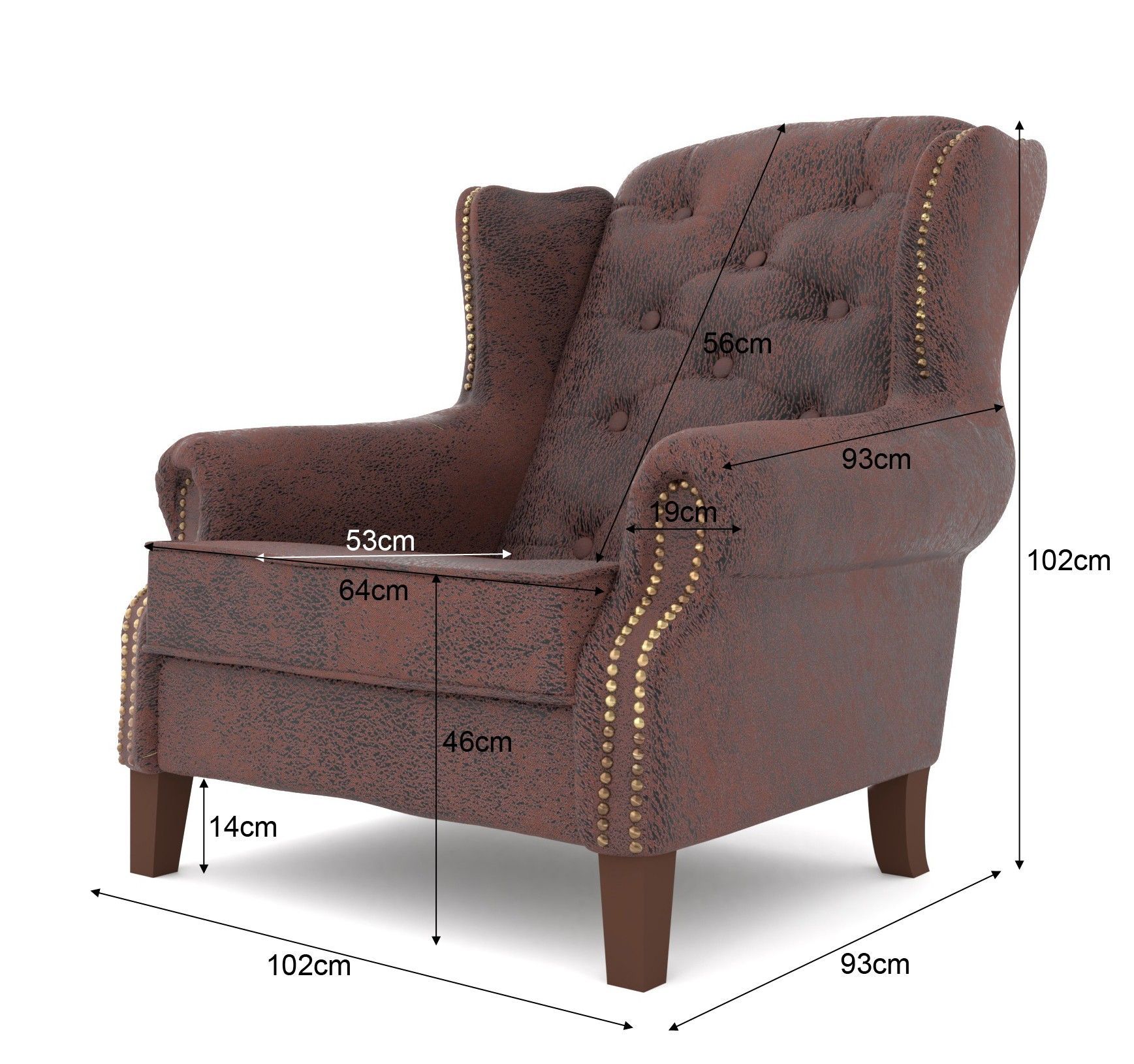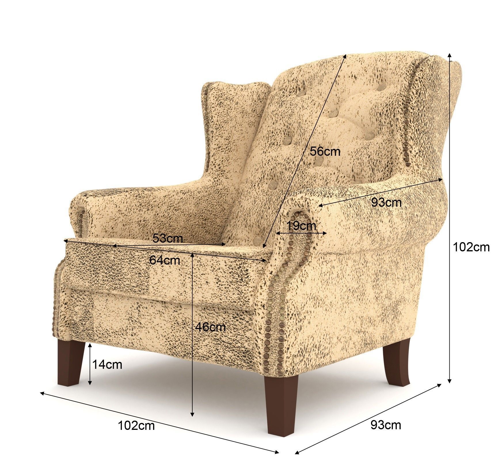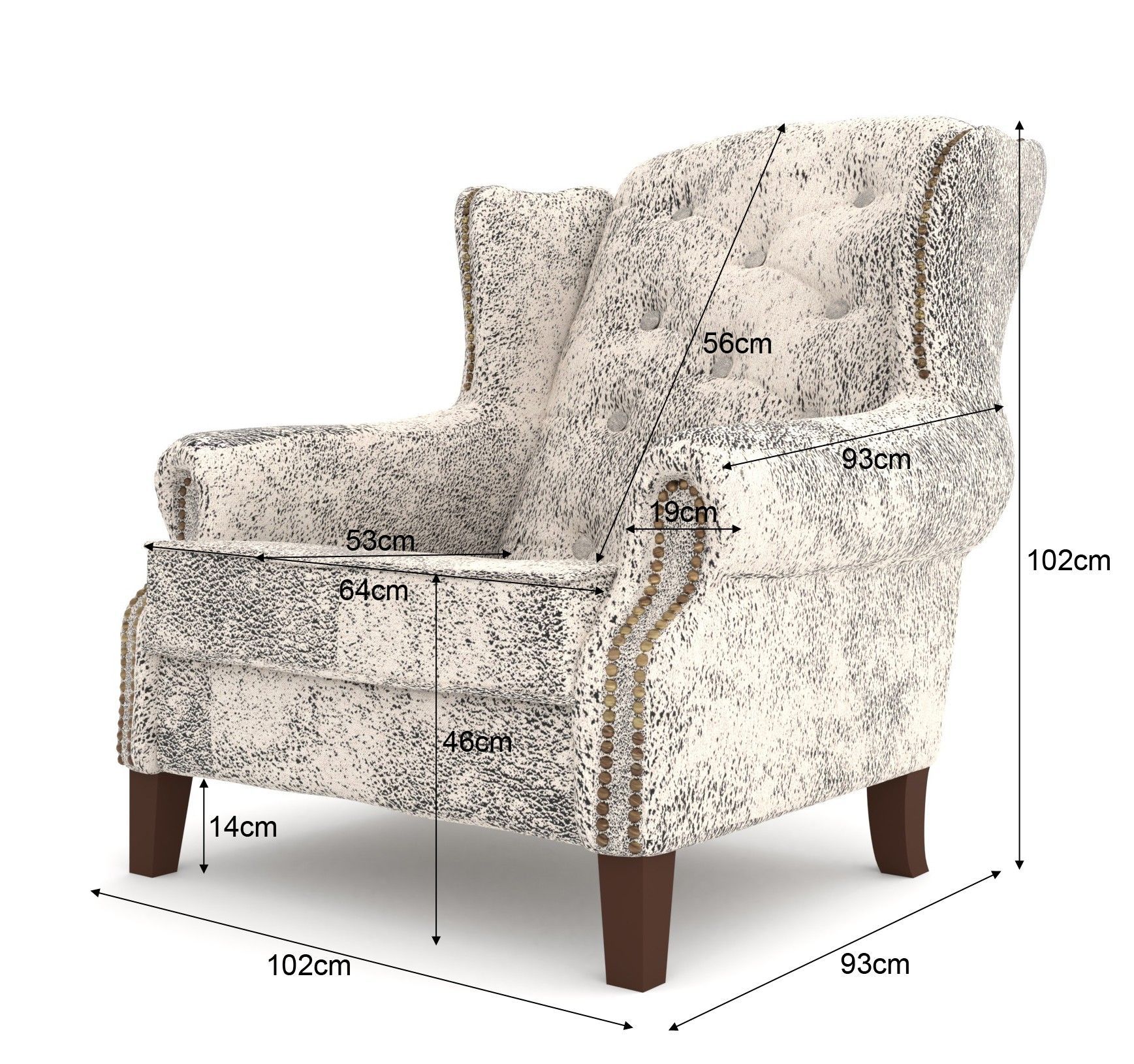 B 102 cm x T 93 cm x H 102 cm