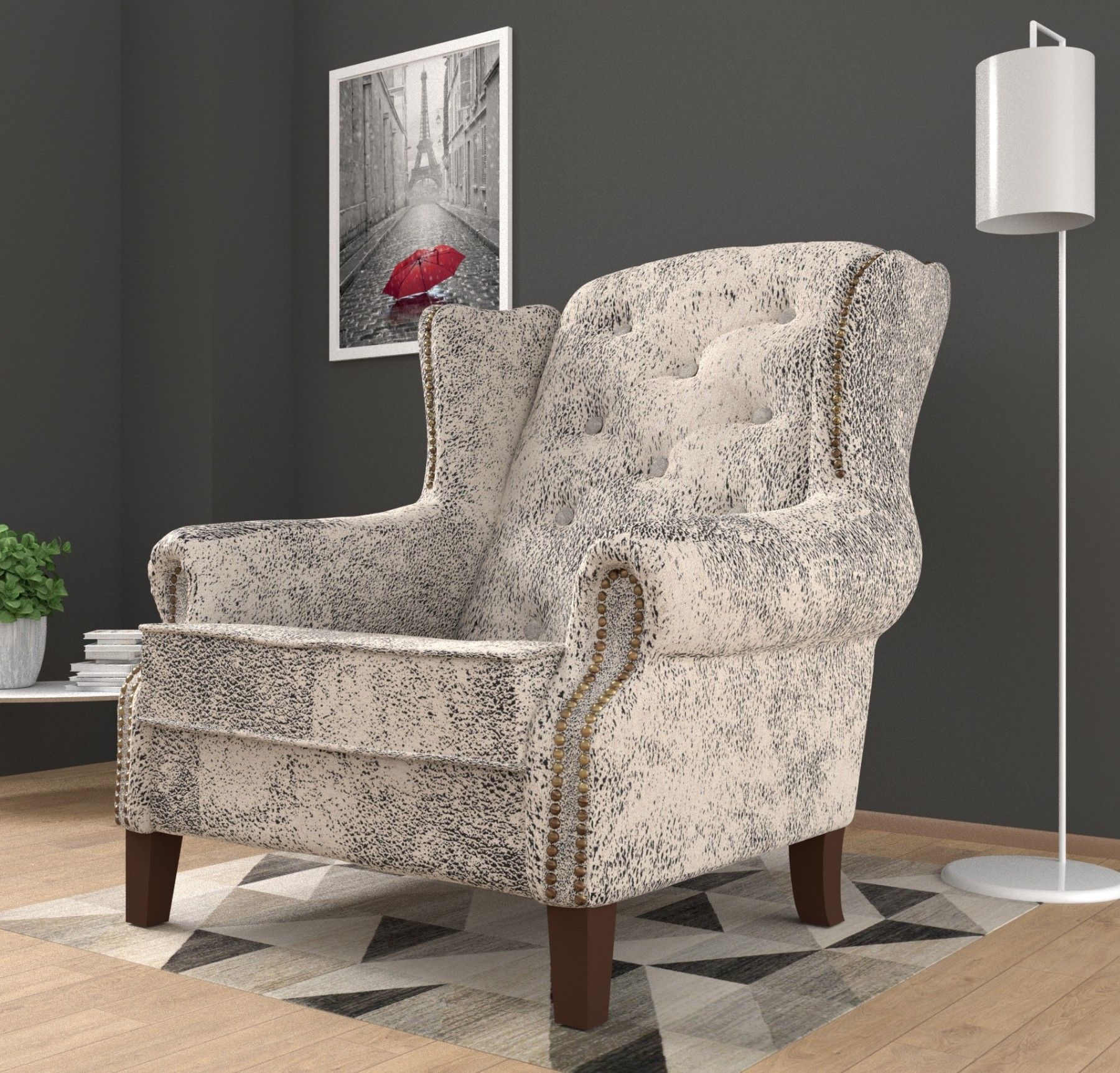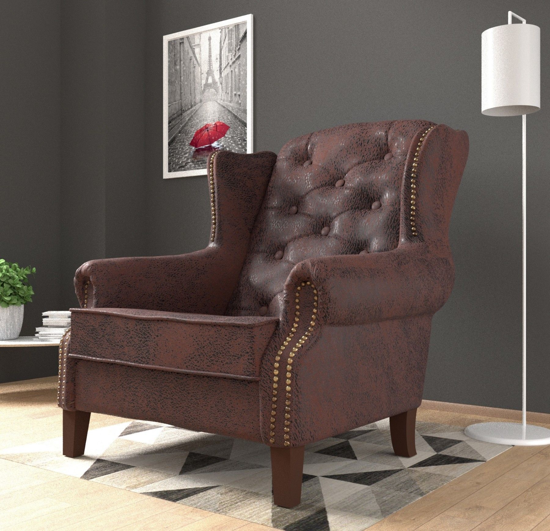 Zane - Chesterfield Ohrensessel aus Luxusmicrofaser Vintageoptik