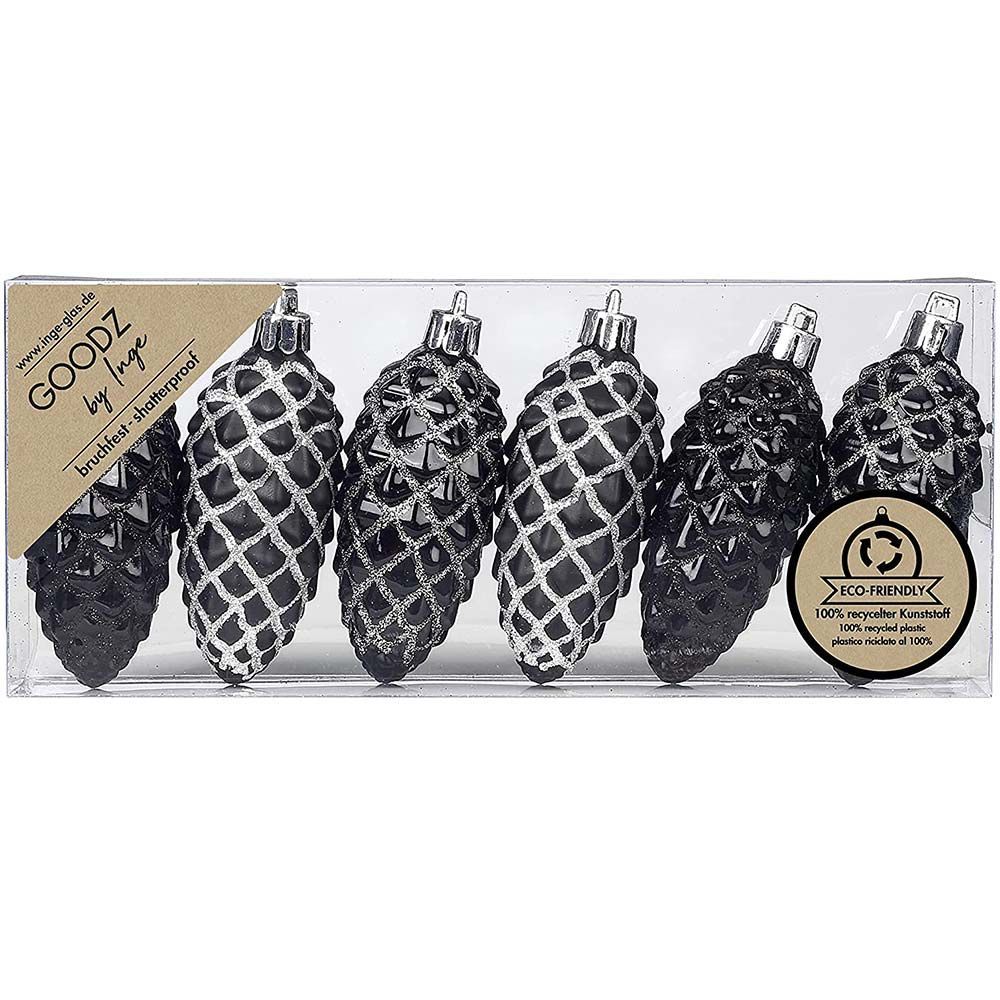 Inge-Glas Zapfen Kunststoff 9cm Schwarz-Mix 6 Stk Inge-Glas