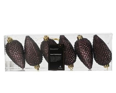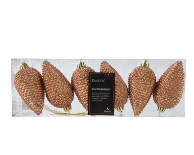 • Christbaumschmuck Zapfen 8cm Kunststoff 6 Stück - Brandy