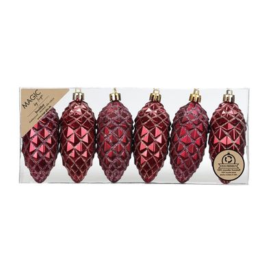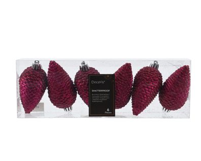 • Christbaumschmuck Zapfen 9cm Kunststoff 6er Set - Bordeaux Red