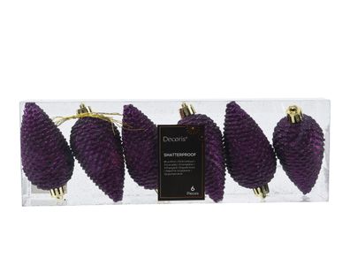 • Christbaumschmuck Zapfen 8cm Kunststoff 6 Stück - Heidelila