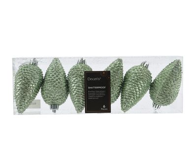 • Christbaumschmuck Zapfen 8cm Kunststoff 6 Stück - Matchagrün