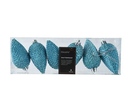 • Christbaumschmuck Zapfen 8cm Kunststoff 6 Stück - Folkloreblau