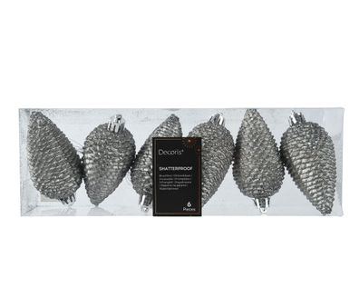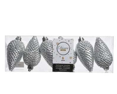 • Christbaumschmuck Zapfen 8cm Kunststoff 6 Stück - Silber