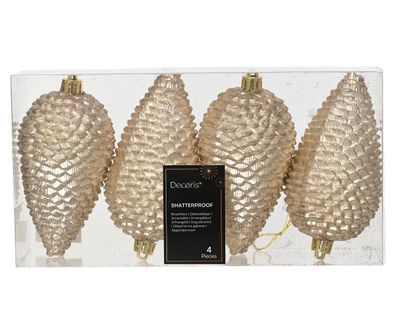 • Christbaumschmuck Zapfen 12cm Kunststoff 4 Stück - Perle