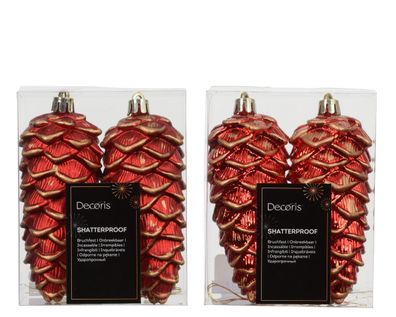 • Christbaumschmuck Zapfen 12cm Kunststoff 4 Stück - Weihnachtsrot