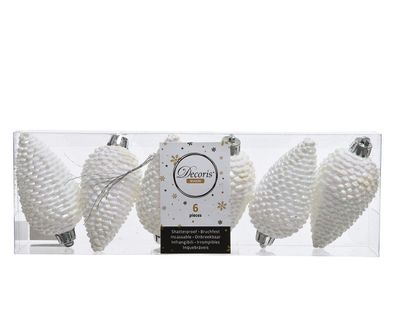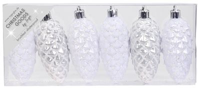 • Christbaumschmuck Kunststoff Zapfen 9cm 6er Set - Weiß