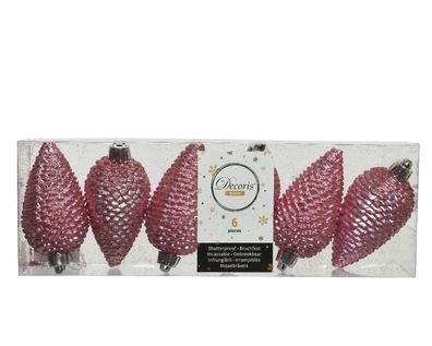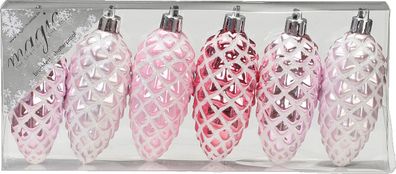 • Christbaumschmuck Kunststoff Zapfen 9cm 6er Set - Rosa Mix