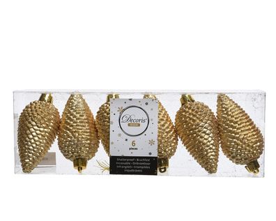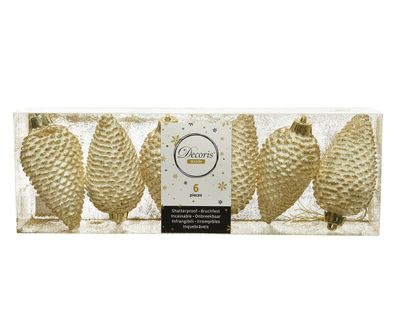 • Christbaumschmuck Zapfen 9cm Kunststoff 6er Set - Creamy Gold