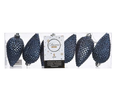 • Christbaumschmuck Zapfen 8cm Kunststoff 6 Stück - Nachtblau