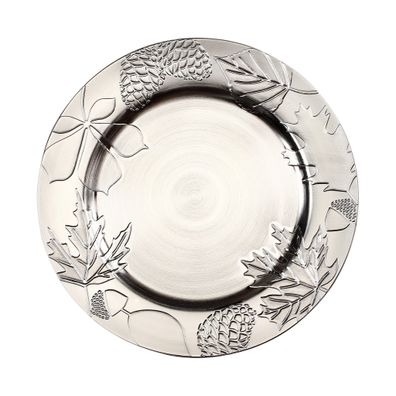 • Dekoteller 33cm Kunststoff mit Blätter & Zapfen Muster Silber