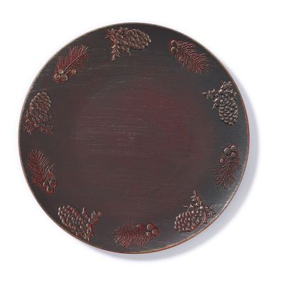 • Dekoteller Kunststoff mit Zapfen Motiv am Rand 33cm braun