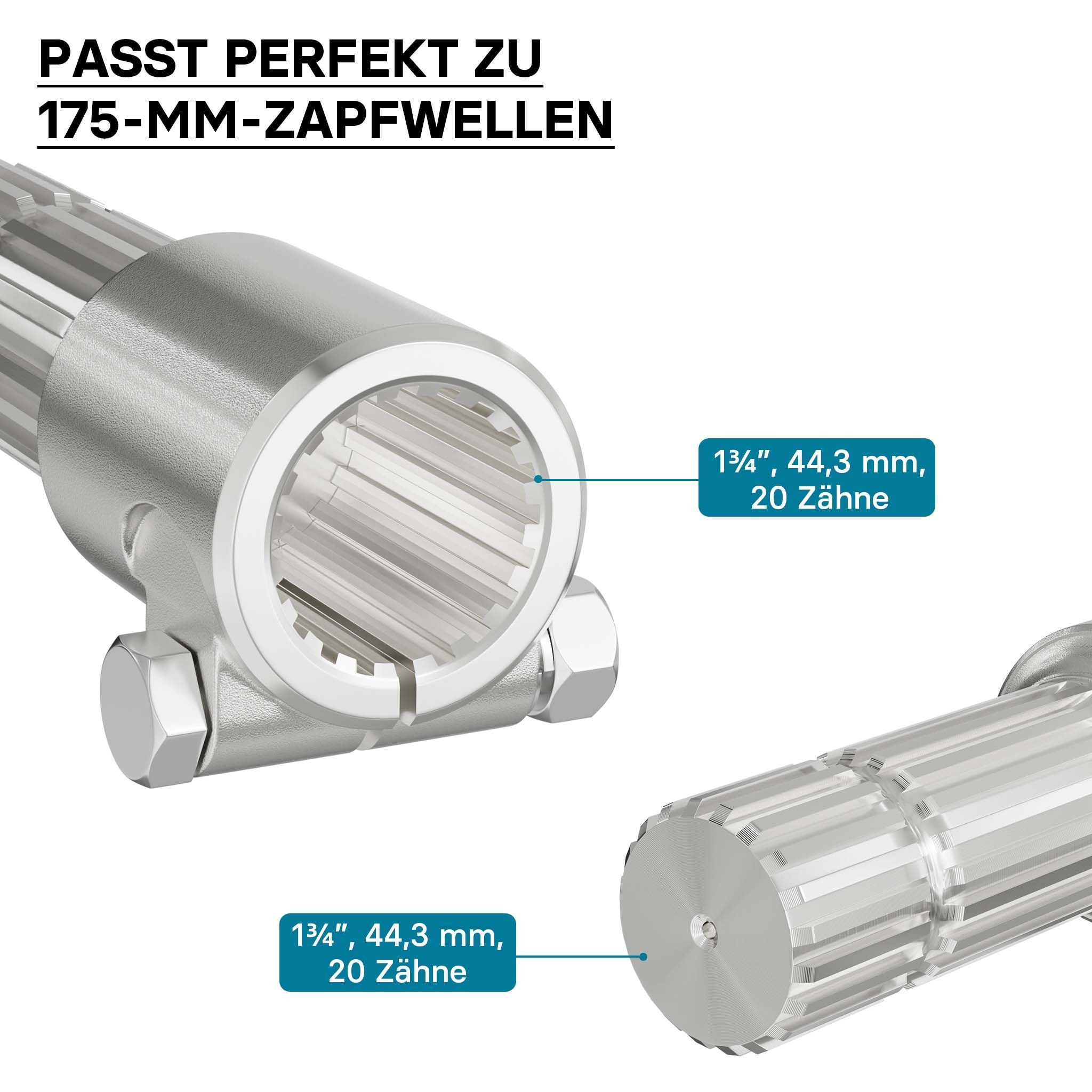 Zapfwelle 175 mm Buchse Keilwellenaufnahme 1 3/4" Z20 Ausgangswelle 1 3/4" Z20