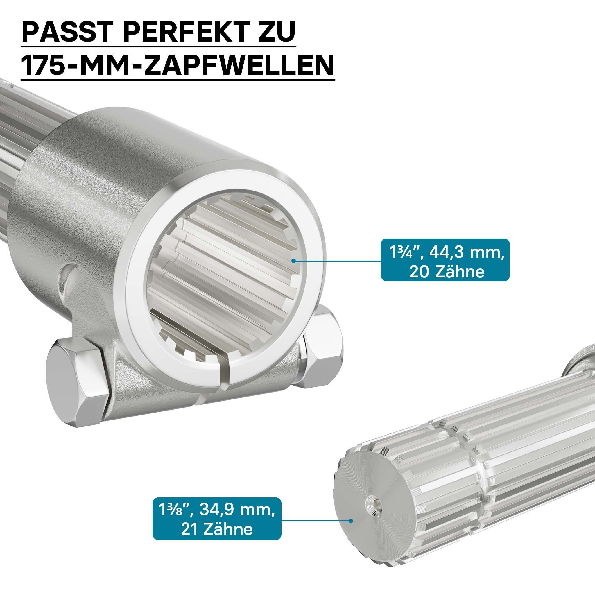 Zapfwelle 175mm Buchse Keilwellenaufnahme 1 3/4" Z20 f. Ausgangswelle 1 3/8" Z21