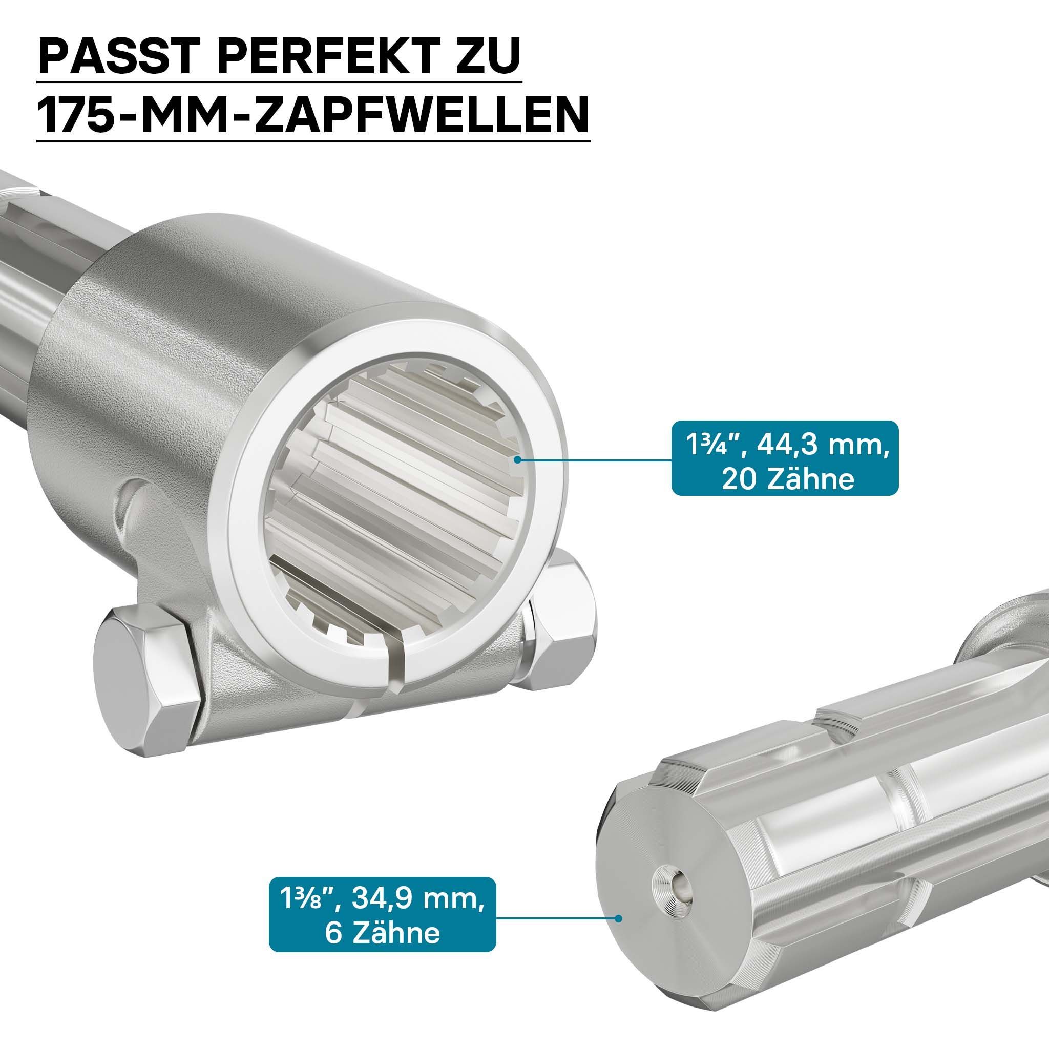 Zapfwelle 175mm Buchse Keilwellenaufnahme 1 3/4" Z20 für Ausgangswelle 1 3/8" Z6