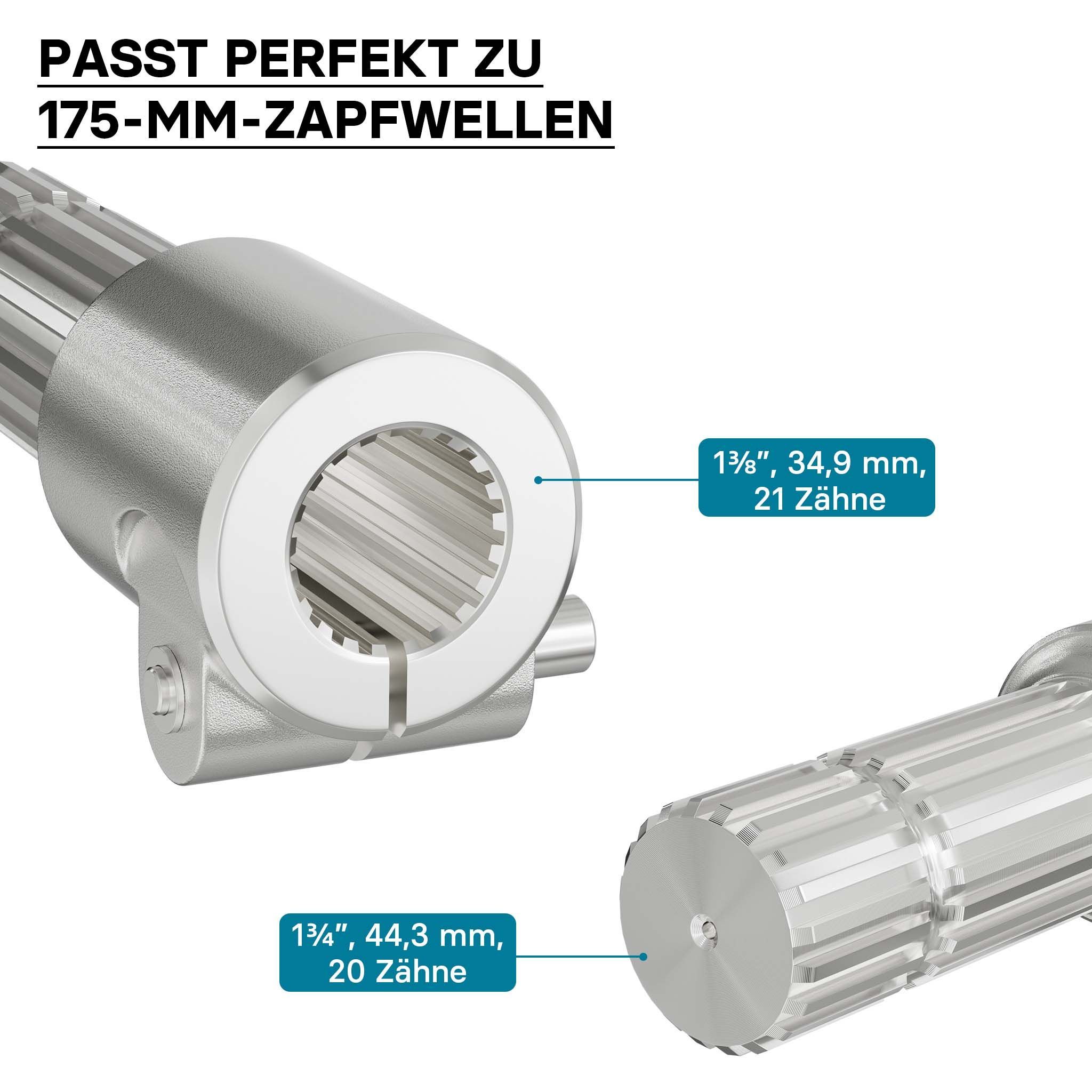 Zapfwelle 175mm Buchse Keilwellenaufnahme 1 3/8" Z21 f. Ausgangswelle 1 3/4" Z20