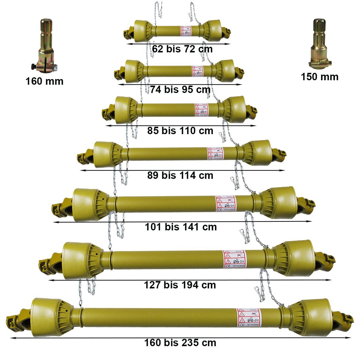 Zapfwelle Kardan Gelenk Antriebs Welle 7 Größen Traktor Verlängerung 1 3/8" 6 Z