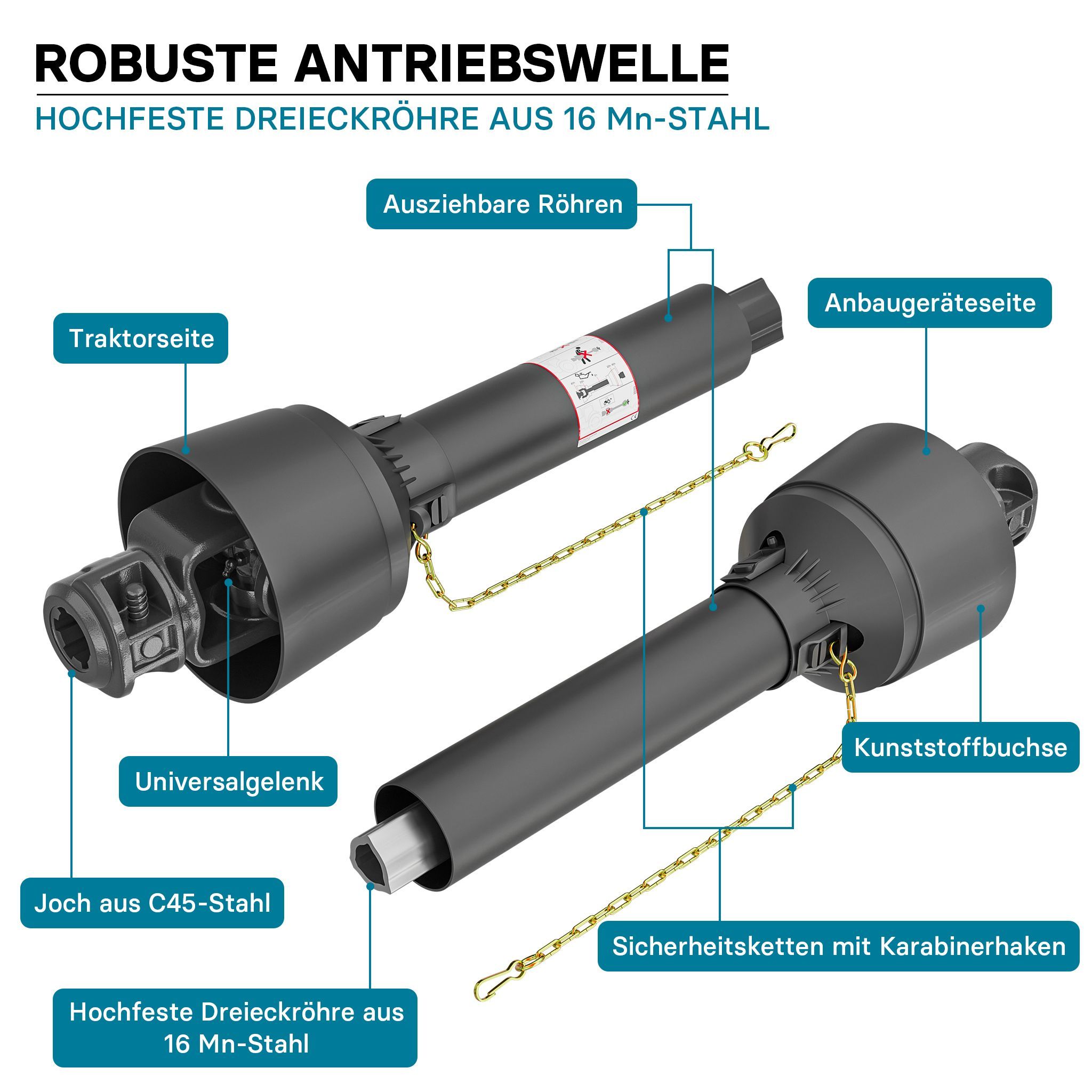 Zapfwelle T1 Gelenkwelle 680mm 210Nm 540U/min PTO-Shaft 18kW 1 3/8" 6 Zähne