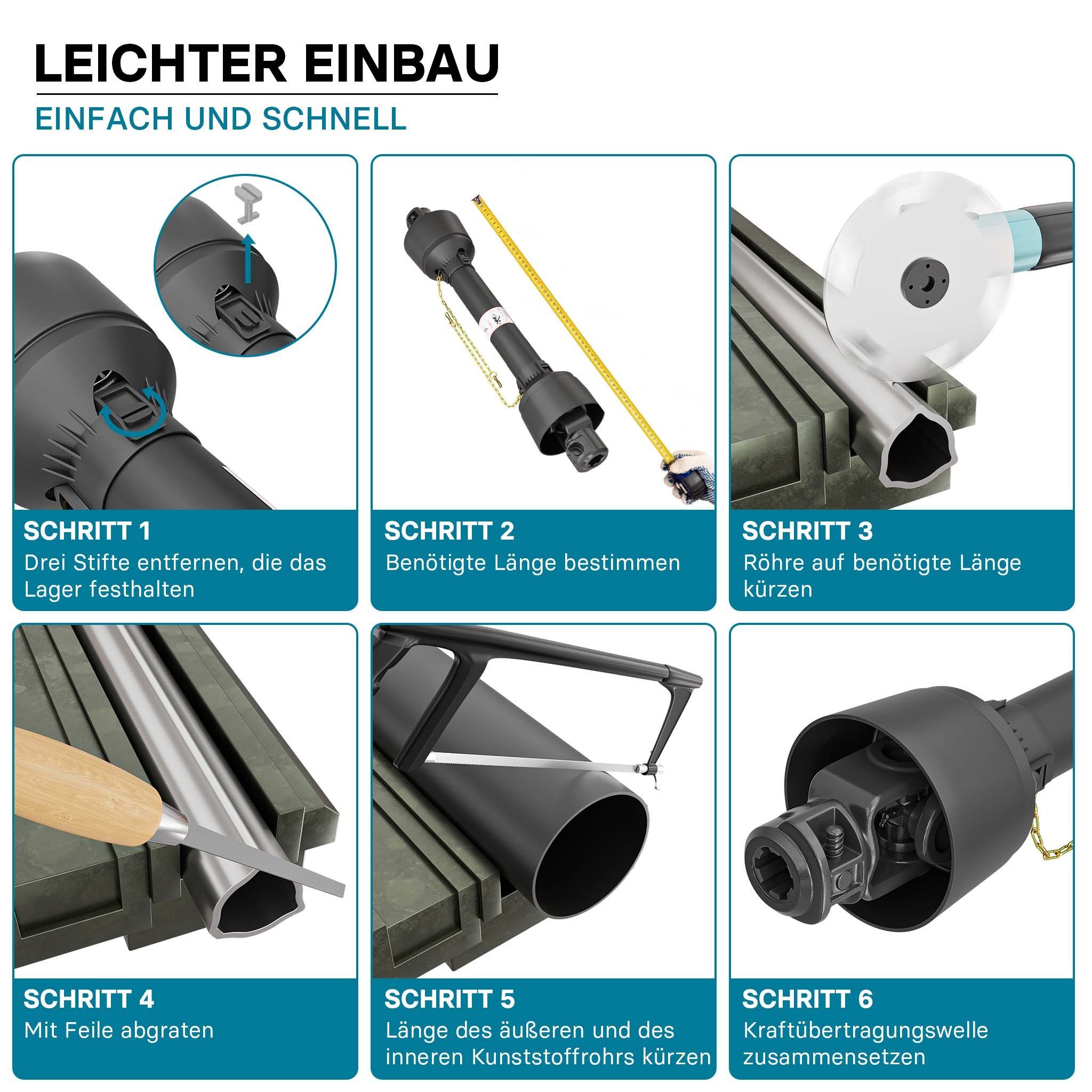 Zapfwelle T6 Gelenkwelle 1000-1100mm 830Nm 540U/min PTO-Shaft 74kW 1 3/8" 6 Zahn