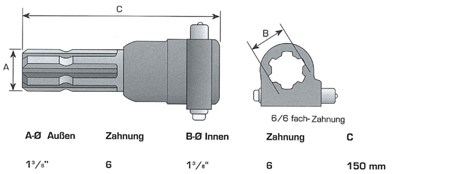 Zapfwellenverlängerung Zapfwelle 172mm Verlängerung 1 3/8" 6 Z Zapfwellenaufsatz