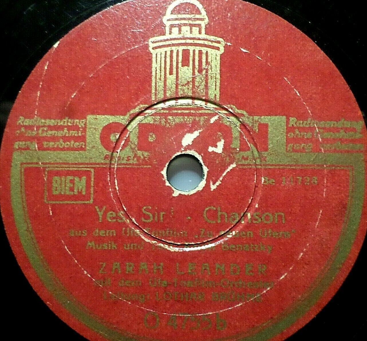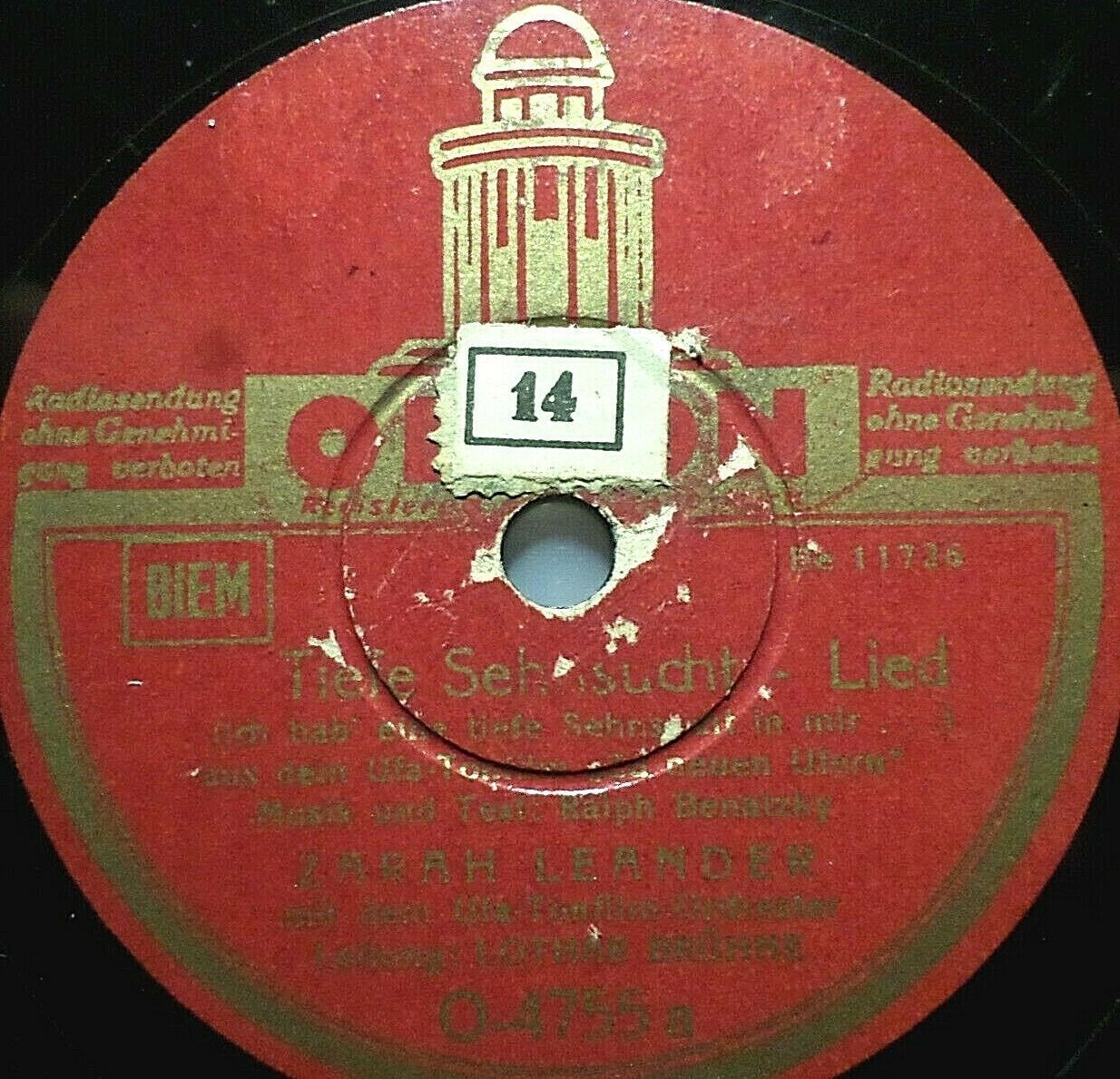 Zarah Leander "Tiefe Sehnsucht / Yes, Sir" Odeon 1937 10" 78rpm