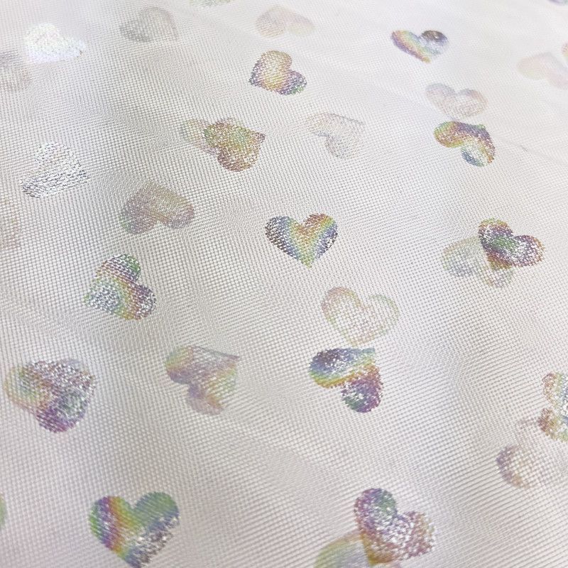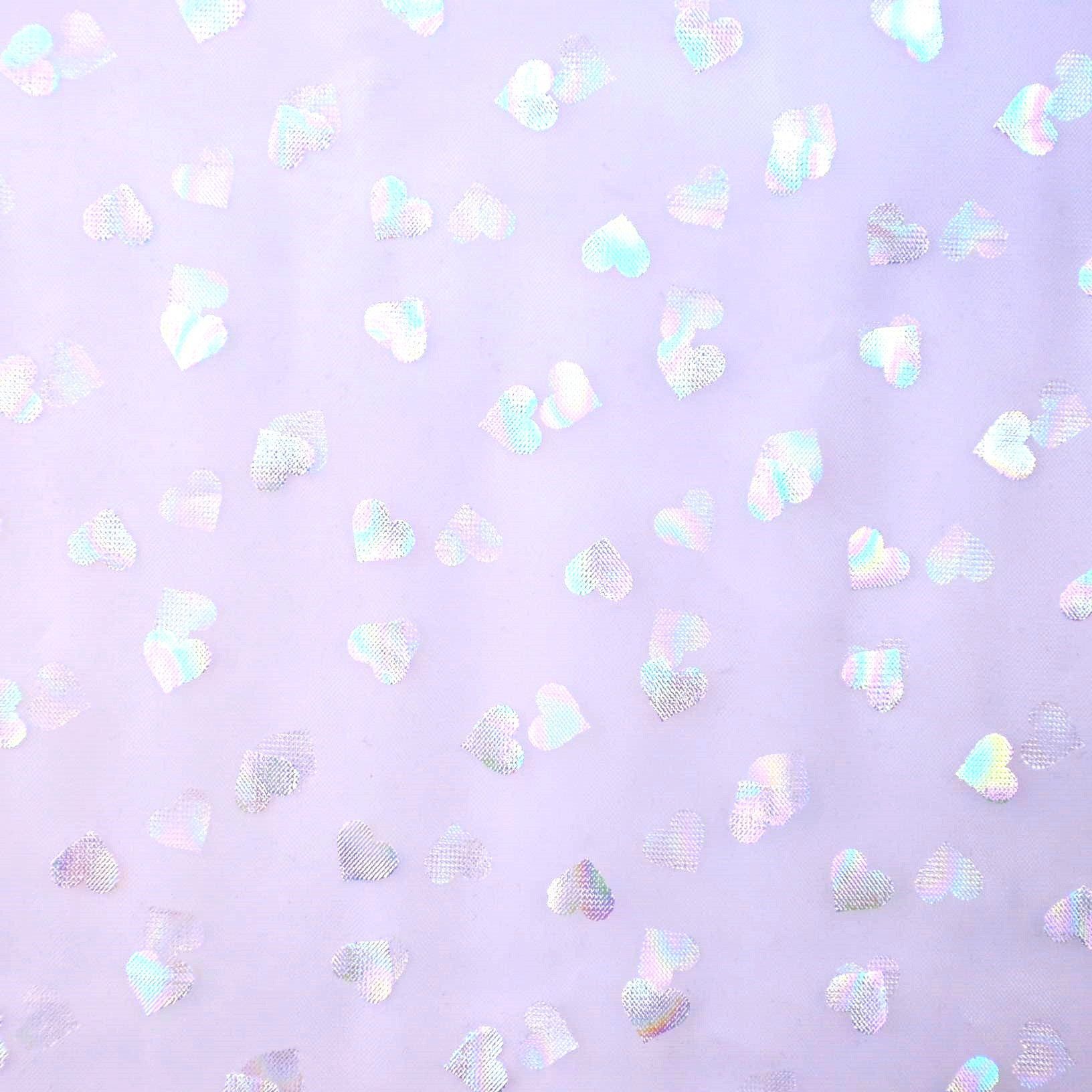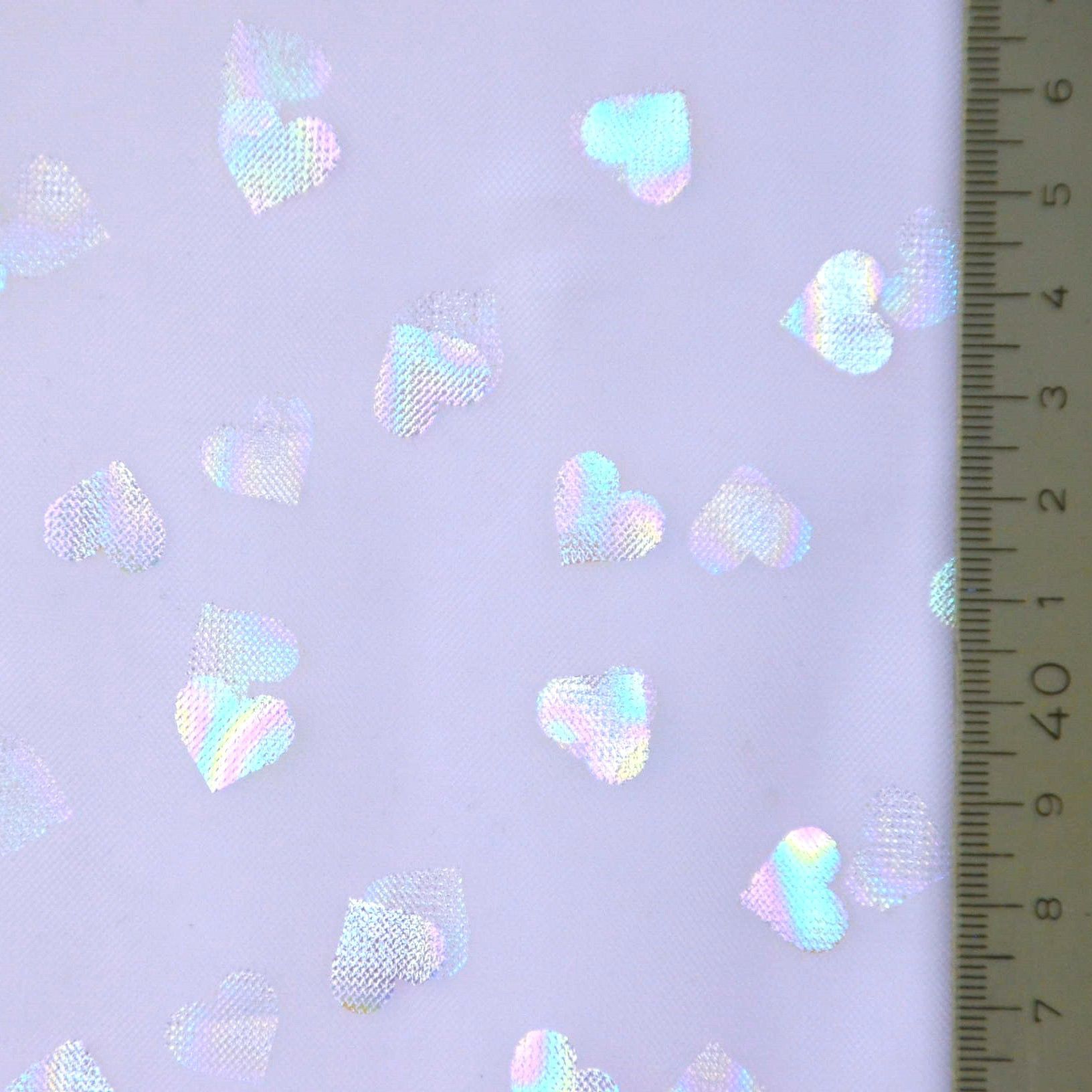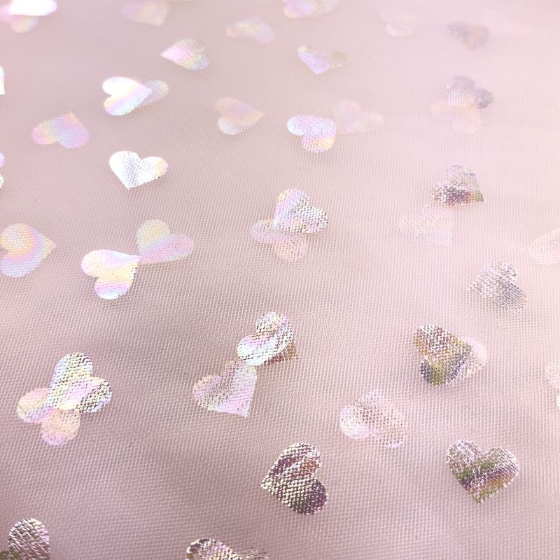 Tüll in off-weiß, lachsrosa und flieder mit Herzchen aus Folie