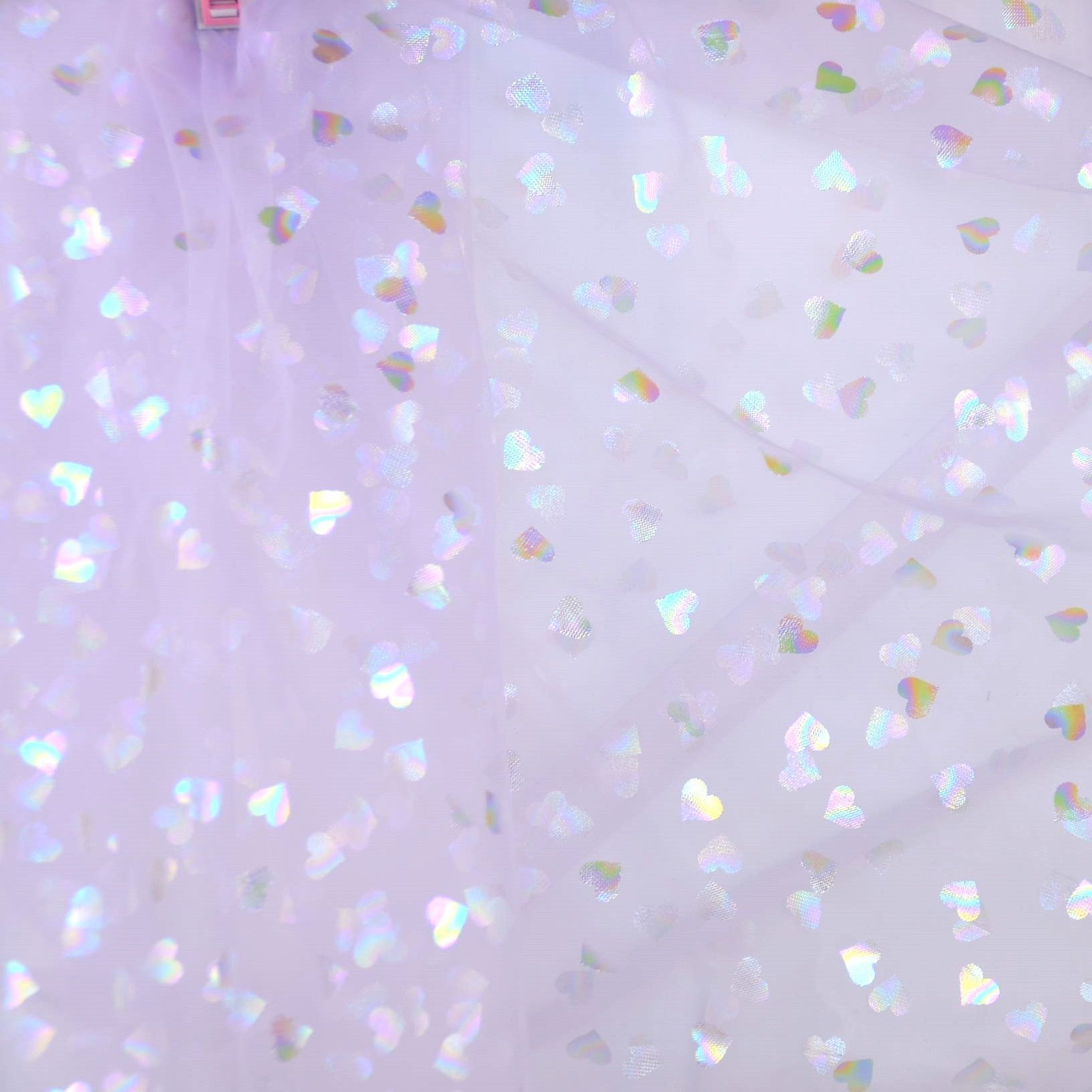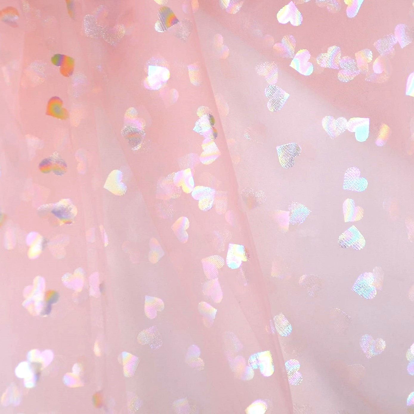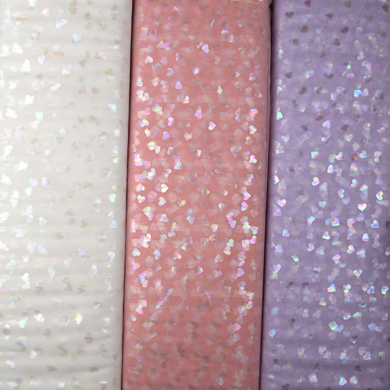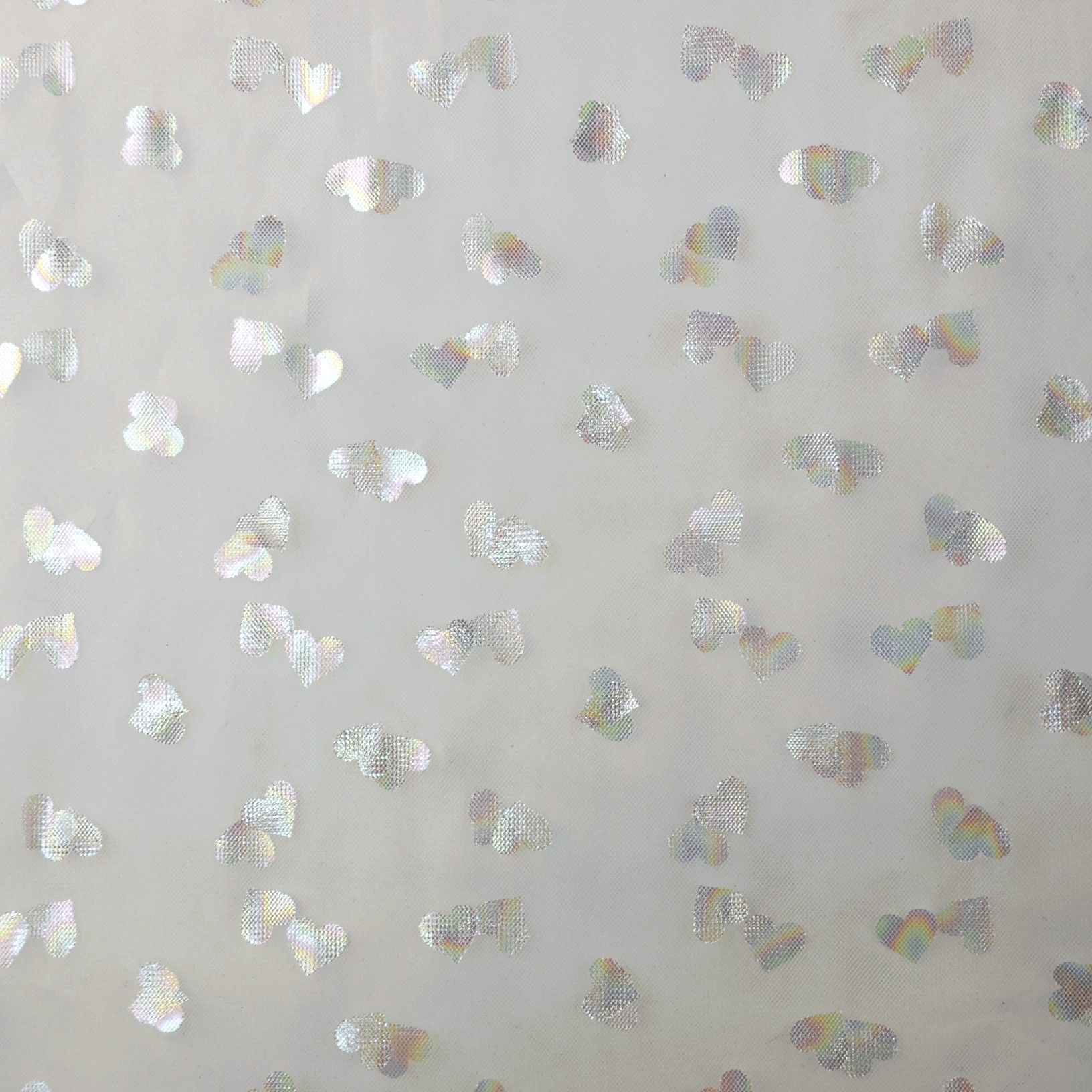 Tüll in off-weiß, lachsrosa und flieder mit Herzchen aus Folie