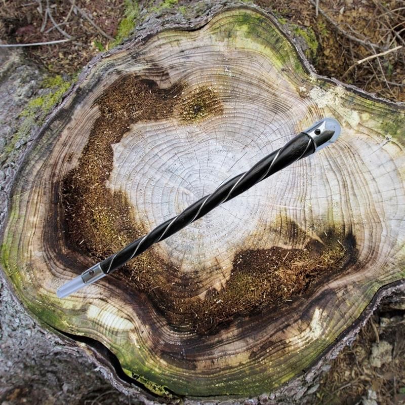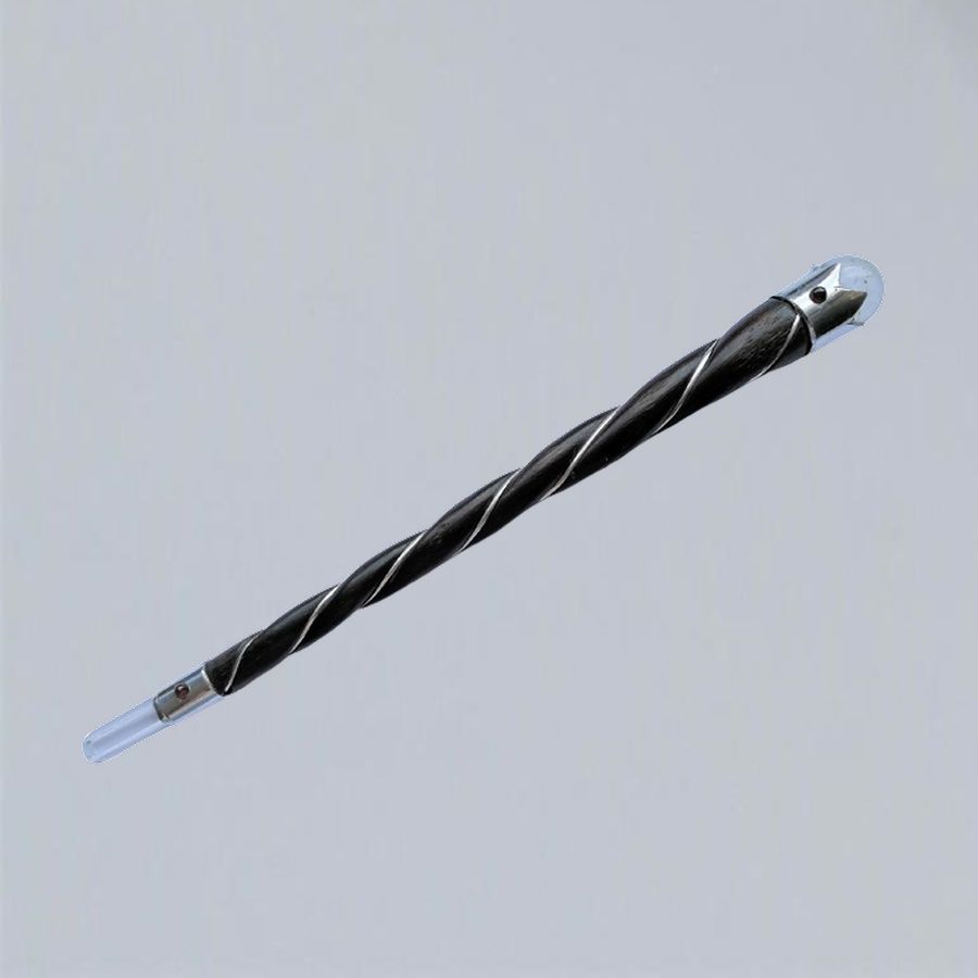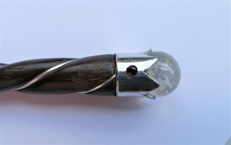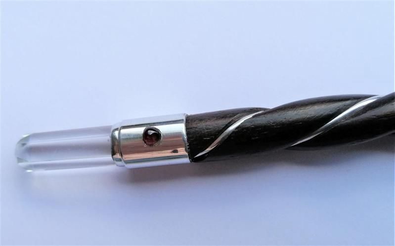 Zauberstab aus Rosenholz 20 cm mit Bergkristall, Silberdraht + Silberfassung