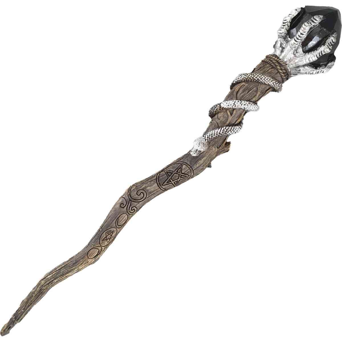 Zauberstab "Serpenta" silberne Hand hält schwarzen Stein