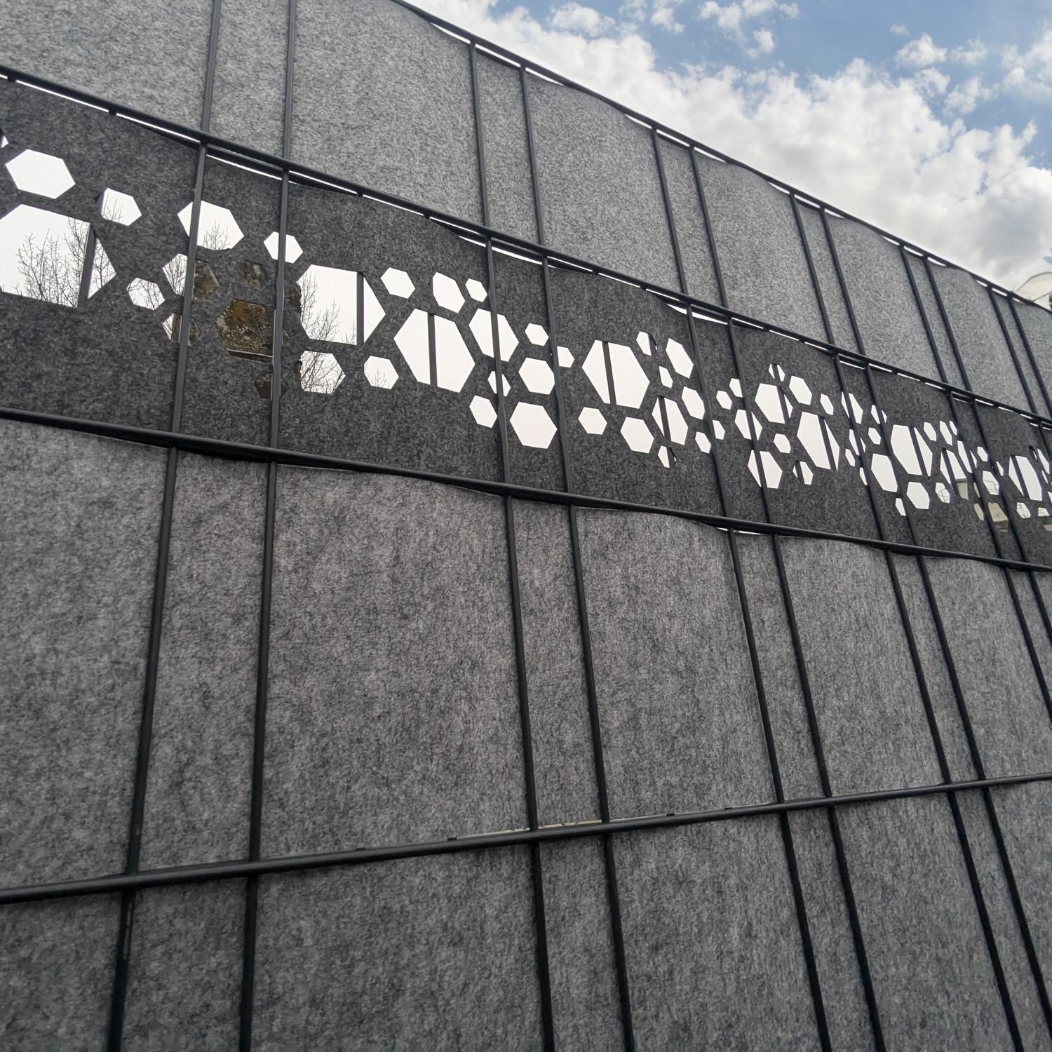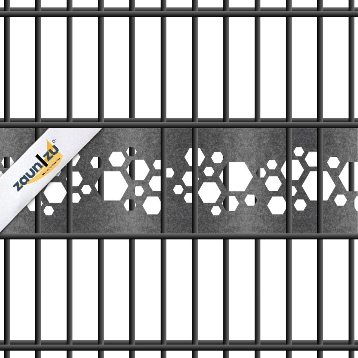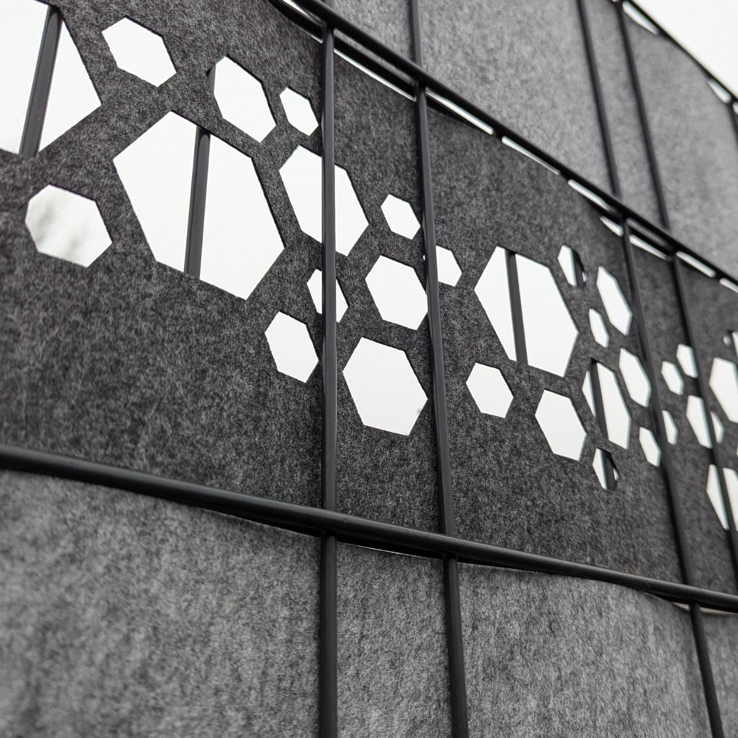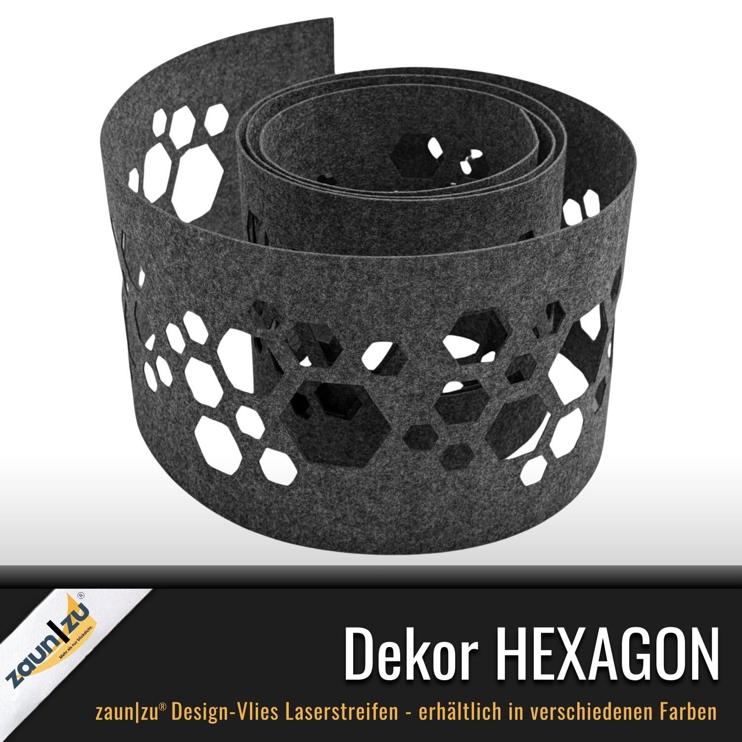 zaun|zu Design Vlies Dekor Hexagon: Sichtschutzstreifen mit Lasermuster für Doppelstabzaun