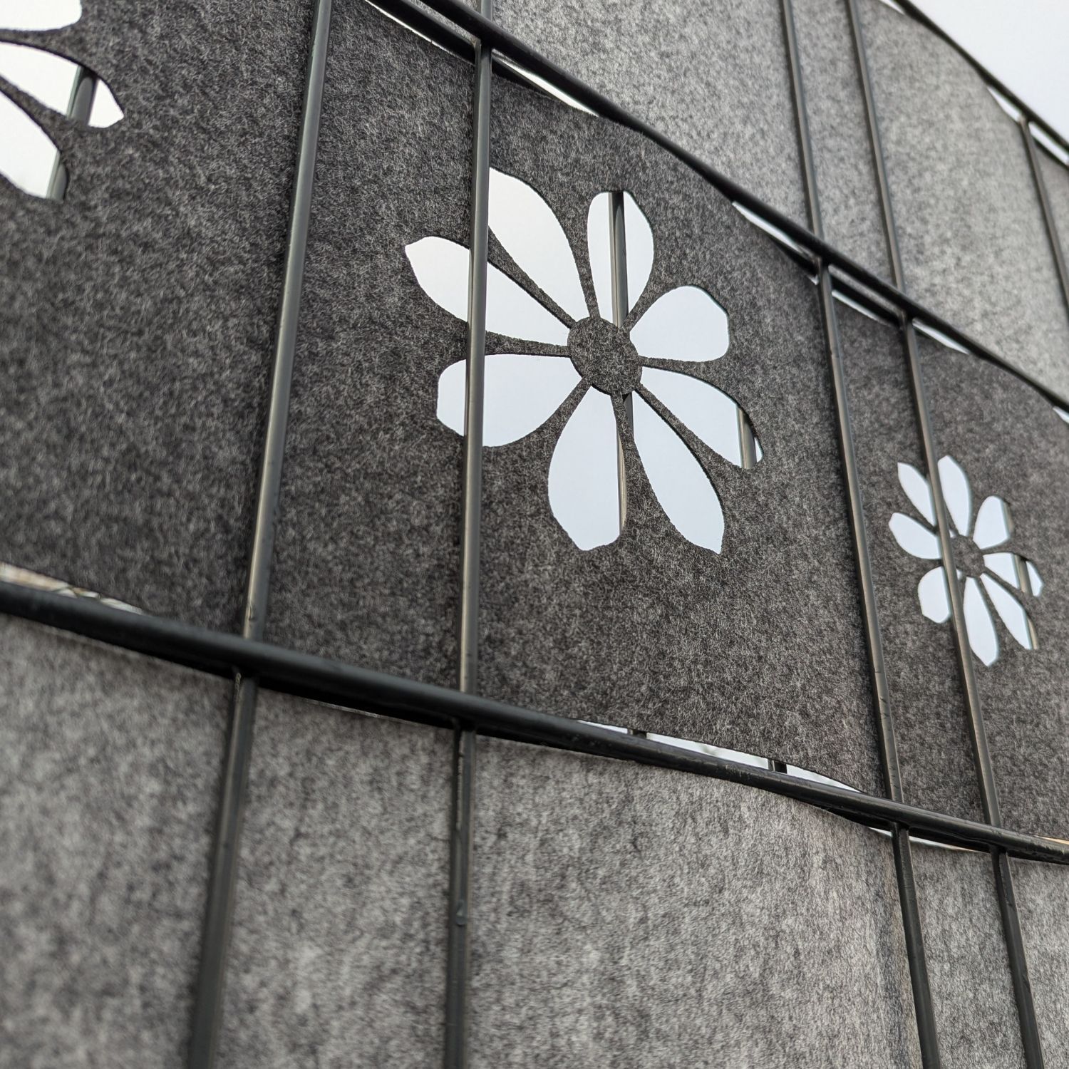 zaun|zu Design Vlies Dekor Sonnenblume: Sichtschutzstreifen mit Lasermuster für Doppelstabzaun