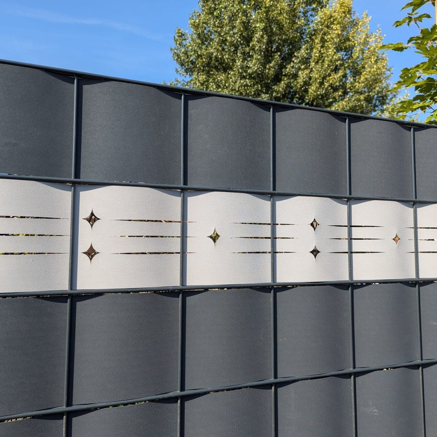 zaun|zu Premium Dekor Starline: Zaunstreifen mit Lasermuster für Doppelstabzaun