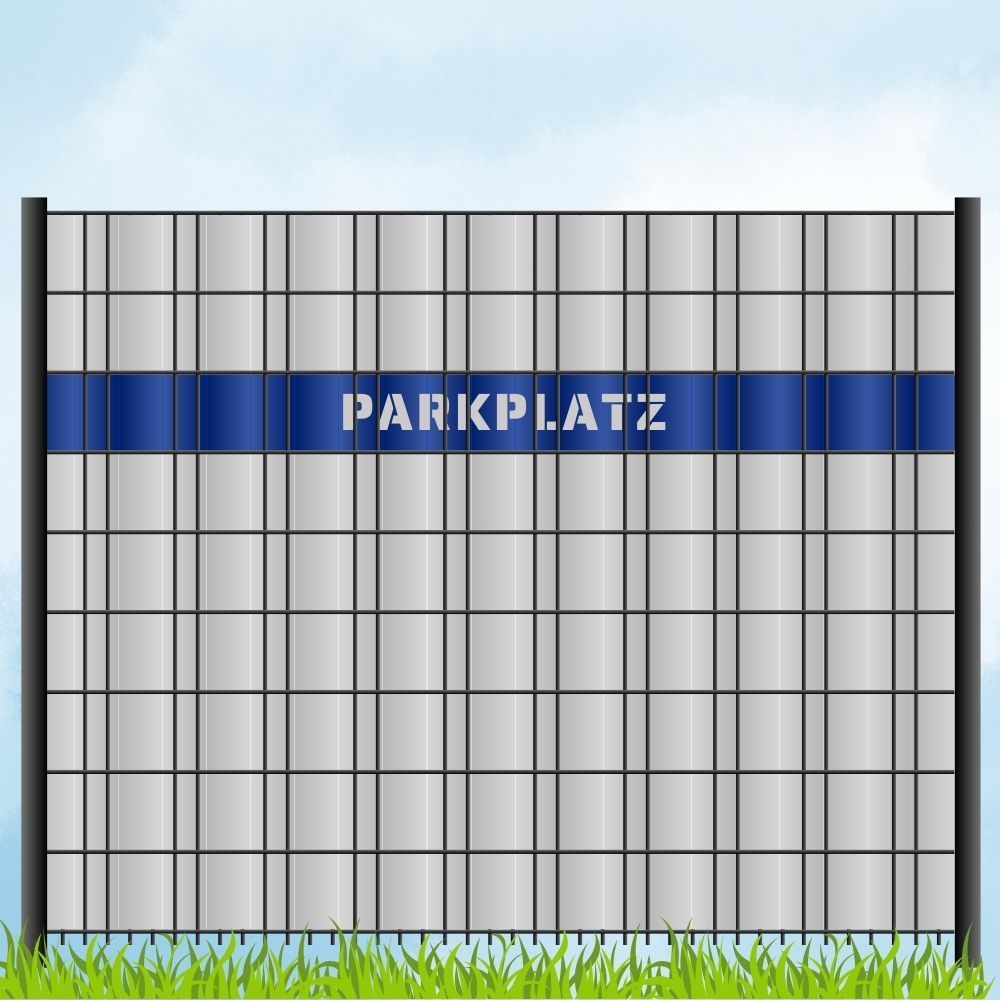 zaun|zu Sichtschutzstreifen mit Laser Beschriftung "PARKPLATZ" für Doppelstabzaun