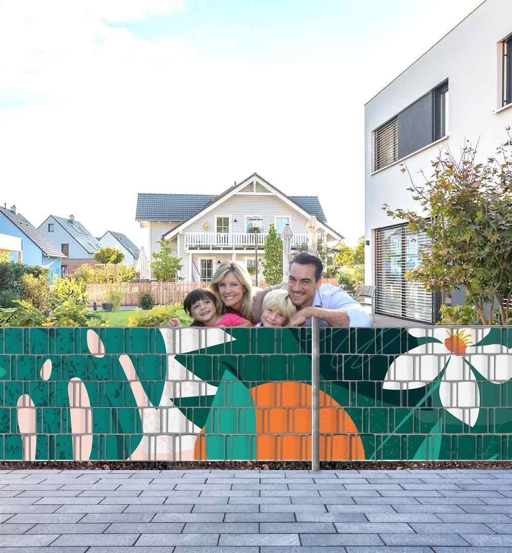 Zaunsichtschutz Minimalistische Blätter Blüten und Orangen