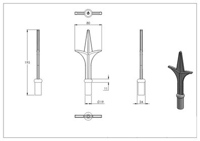 • Zaunspitze | Höhe: 195 mm | Material: Ø 19 mm | Stahl S235JR, roh