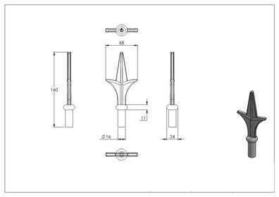 • Zaunspitze | Höhe: 160 mm | Material: Ø 16 mm | Stahl S235JR, roh