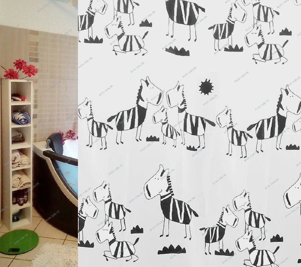 Zebi Black Duschvorhang 180 x 200cm. 100% PEVA, Zebra Motiv