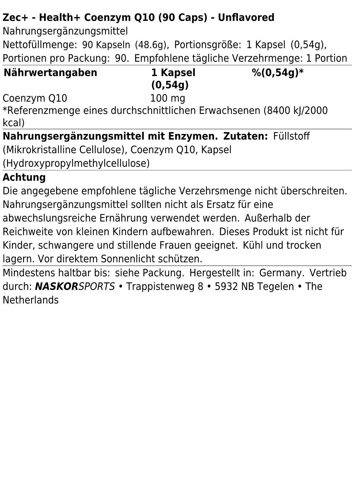 Zec+ Health+ Coenzym Q10 (90 Caps) Unflavored