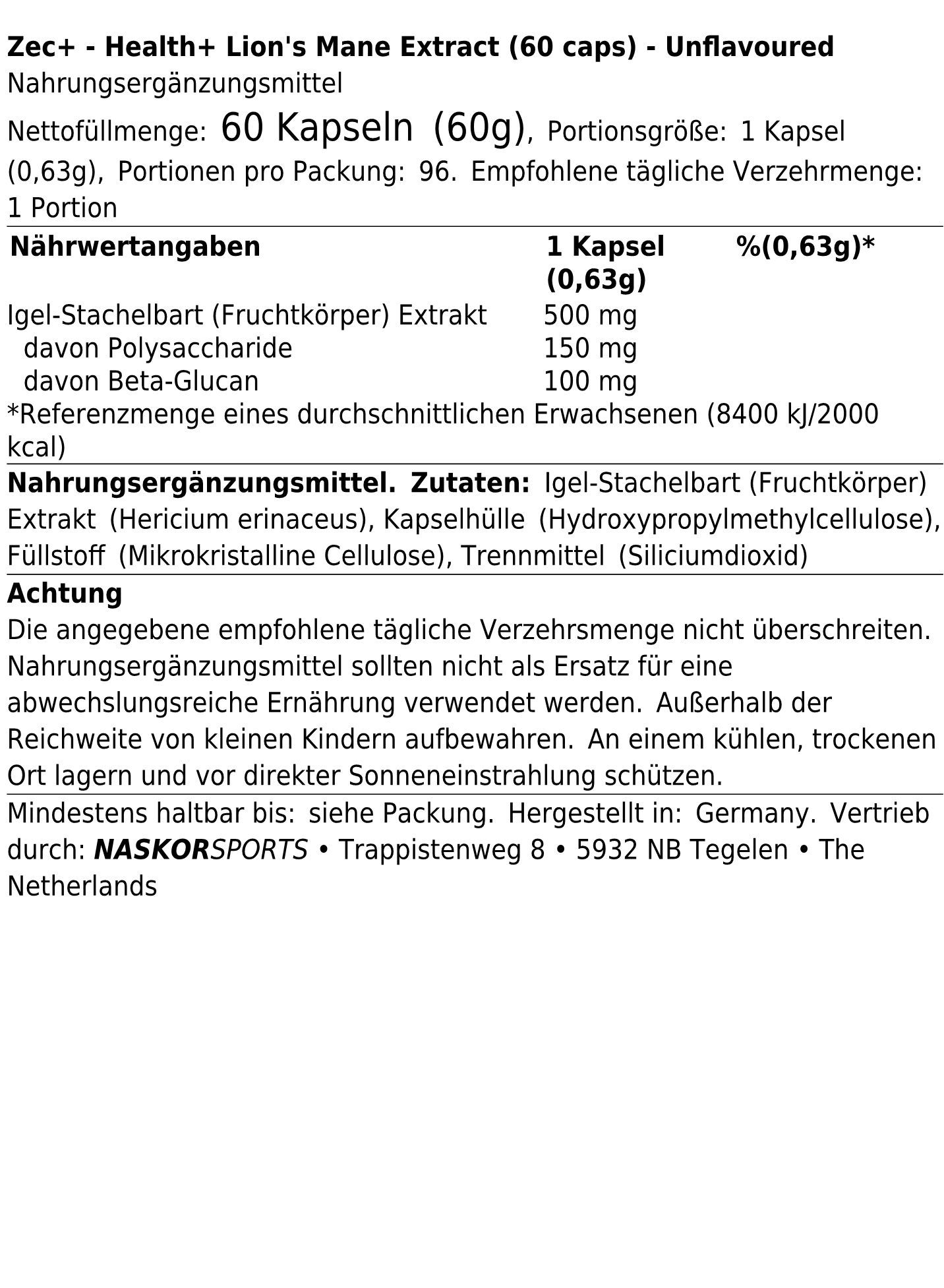 Zec+ Health+ Lions Mane Extract (60 caps)